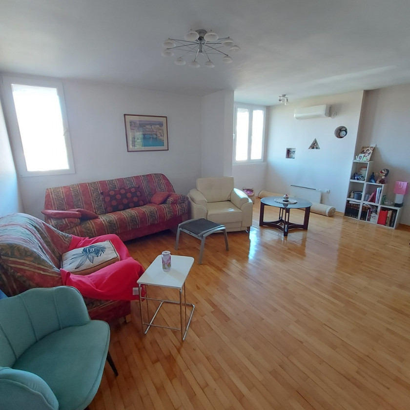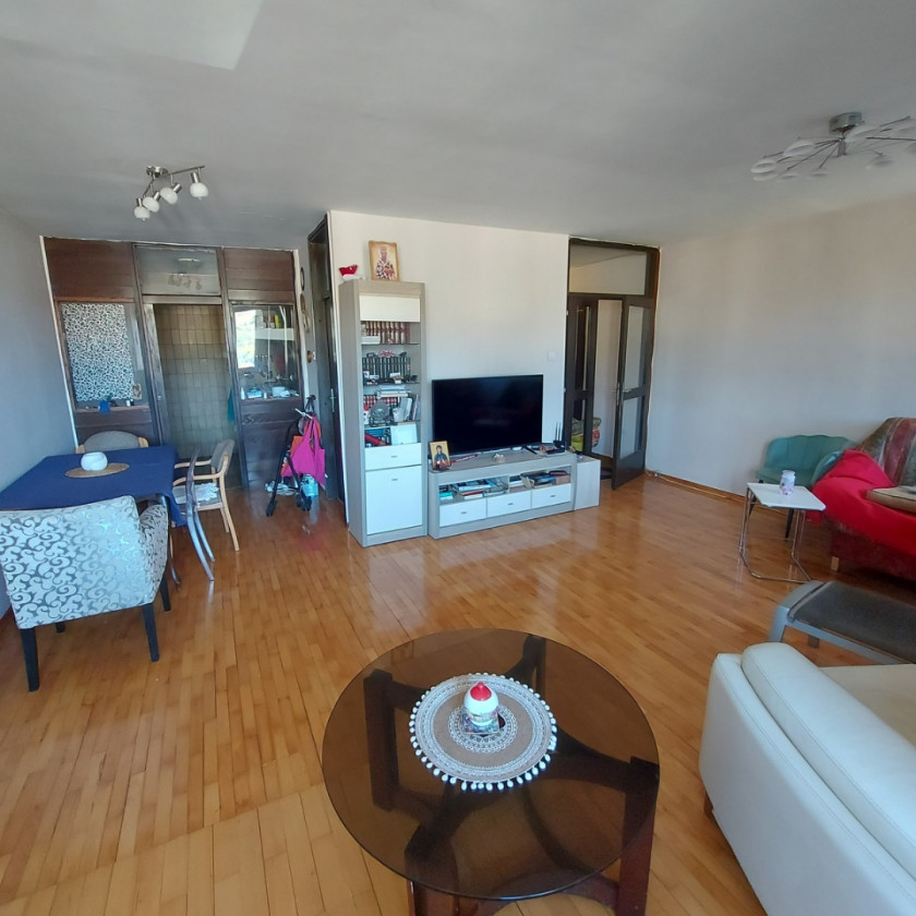 The apartment is located on the 5th floor of a building with an elevator. The property register lists 85 m². It is in its original condition. There are only two apartments on the floor, and there is a possibility of using the space/terrace located between the two apartments. It is double-oriented (north–south). Excellent location — two elementary schools and a kindergarten are just a few hundred meters away, as well as a health centre, jogging track, and many other amenities needed for family life. Public parking is available around the building.