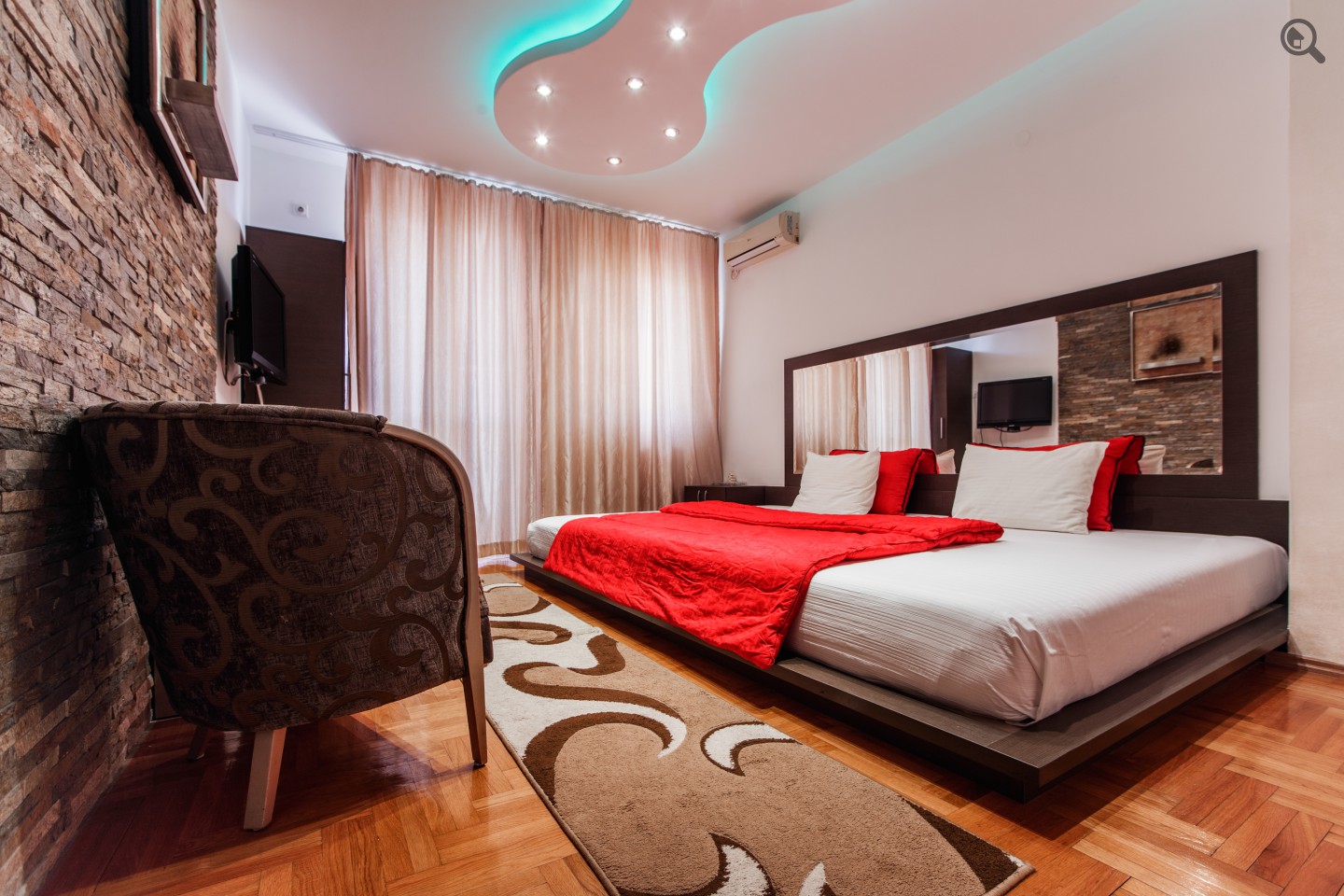 Beschreibung: Apartmani Beograd – Apartman Glamour, sam naziv apartmana otkriva Vam o čemu je reč. Ovaj glamurozan, lux i sa stilom uređen apartman, pruža savršen smeštaj u Beogradu. Nalazi se u ulici Bulevar Arsenija Čarnojevića, na prvom spratu zgrade sa liftom. Površine 51m2, kompletno je opremljen za boravak do 2 osobe. Poseduje ogroman bračni krevet u spavaćoj sobi, malu kuhinju sa ringlom, bez šporeta, mini bar, kupatilo. Osim toga Apartman Glamour u svom sastavu ima i đakuzi, gde možete da se relaksirate posle napornog dana. Takođe, na raspolaganju su i klima uređaj, CG, LCD tv, KTV, mini linija, WiFi, posteljina i peškiri. Apartman Glamour nalazi se u blizini hotela In, na 5 min udaljenosti od Kombank Arene, a nedaleko i od Sava Centra. Apartman na dan ispunjava sve kriterijume, kvalitetnog smeštaja u Beogradu! Cena za Novu godinu važi u periodu od 26.12-4.1.