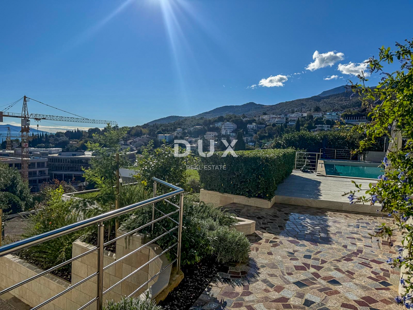 Beschreibung: OPATIJA, IČIĆI – Langzeitmiete 100 Meter vom Strand und dem bekannten Marriott Resort entfernt, mit Pool, Panoramablick und Garage