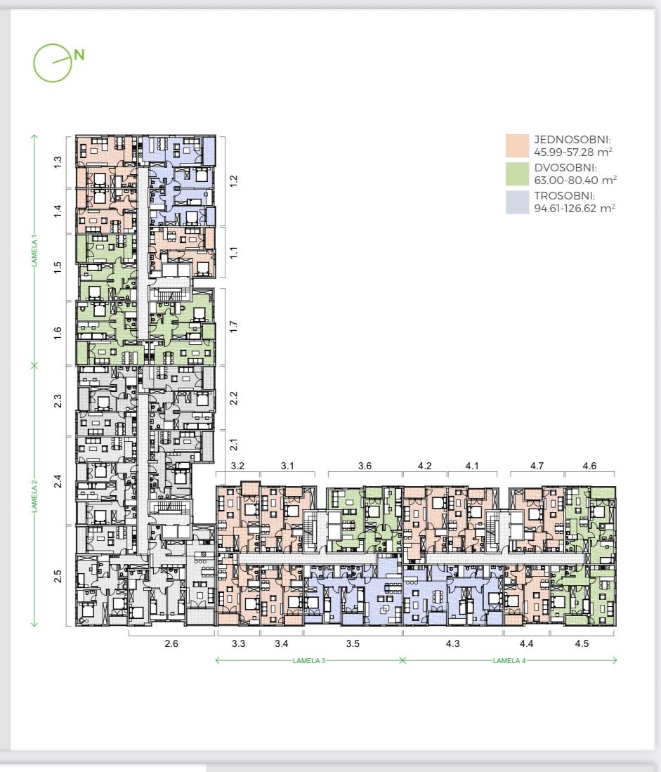 Beschreibung (Englisch): Offered for sale is a two-bedroom apartment under construction, in the building Green level 3. It is located on the first floor, area 77.45m2. Structure of the apartment: entrance hall, toilet, kitchen and dining room, living room, bathroom, two bedrooms and a terrace accessible from the living room and bedroom.