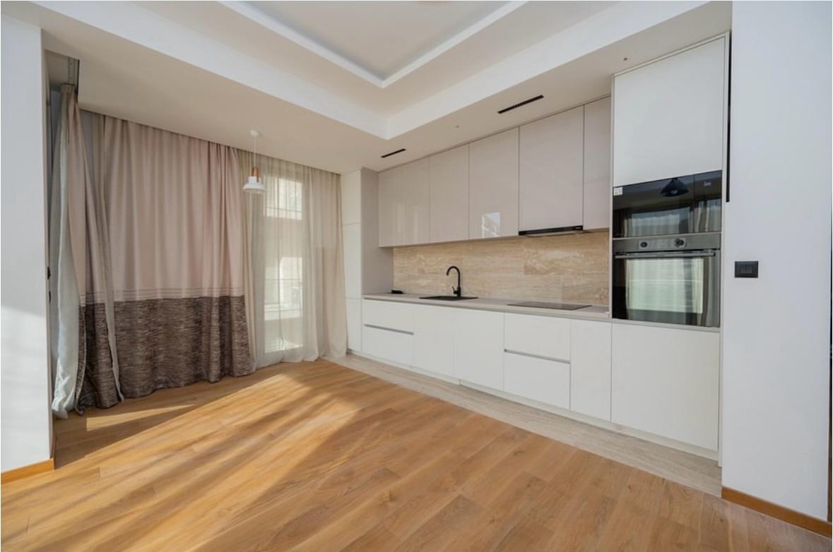 The apartment is unfurnished, except for a fully equipped kitchen, which makes it perfect for organizing office space according to your own needs.