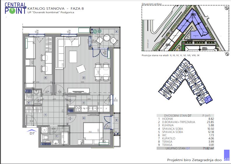 Beschreibung (Englisch): Offered for sale is a two-bedroom apartment, unfurnished, area 71m2. Located on the 9th floor in Central Point. Oriented with opened view to the Ankarski bulevar.