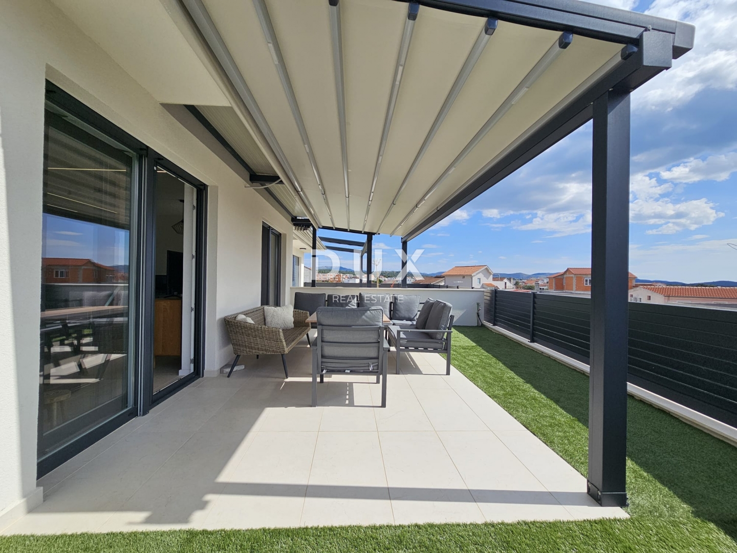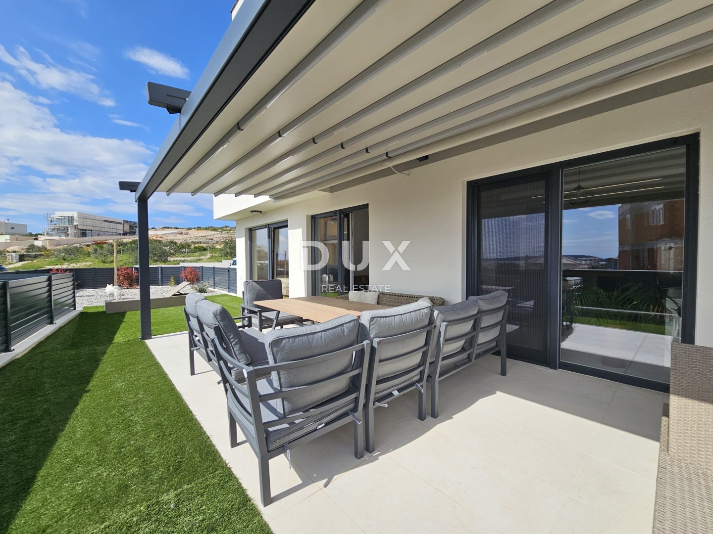 Beschreibung: ŠIBENIK, BRODARICA – NEUBAU, Luxuriös möblierte 3-Zimmer-Erdgeschosswohnung mit Garten