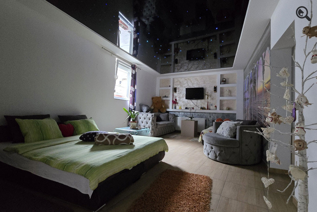 Beschreibung: Studio apartman Zvezdano nebo se nalazi na Petrovaradinu u Novom Sadu. Nalazi se u prizemlju, površine je 50m2 i pogodan je za boravak do 2 osobe. Poseduje prostoriju sa velikim i udobnim bračnim krevetom, single krevet, sofu i fotelju, kao i kupatilo sa tuš kabinom. Apartman poseduje besplatan WiFi internet, LCD TV sa kablovskim kanalima, čiste peškire i čistu posteljinu. Gostima je na raspolaganju korišćenje bazena i saune, dvorište sa roštiljem, kao i besplatan parking. Postoji mogućnost iznajmljivanja apartmana u vidu dnevnog odmora u vremenskom periodu od 4h koji se može iskoristiti do 21h, a cena je 3500 rsd. Mogućnost organizovanja proslava uz doplatu - na upit. NAPOMENA: Cene i uslovi zakupa se razlikuju u periodu Exit festivala. Minimalan zakup je 4 noći i cena je 100e po danu. Dobrodošli!