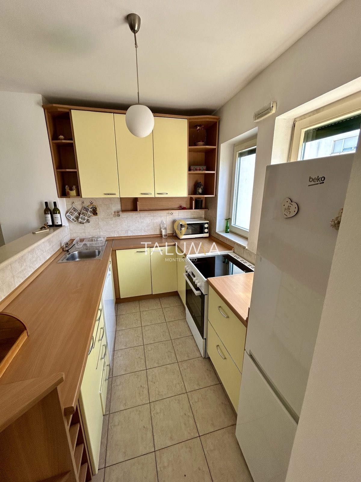 Beschreibung: Izdaje se namješten jednosoban stan površine 56m2, Momišići. Stan je pozicioniran na trećem spratu stambene zgrade koja posjeduje lift.