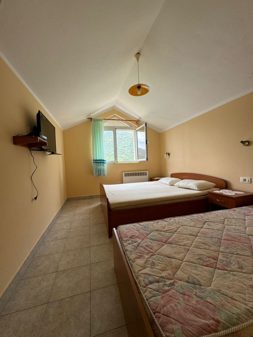 Beschreibung: In exklusiver Lage in Lepetani, direkt am Meer, steht ein geräumiges Haus mit einer Gesamtfläche von 240 m² + Terrasse + Garage zum Verkauf. Zum Anwesen gehört ein 200 m² großes Grundstück.