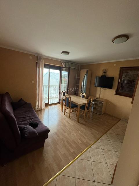 Beschreibung: Iznajmljuje se dvosoban stan s dnevnim boravkom, kuhinjom i balkonom, smješten na izvrsnoj lokaciji s prekrasnim pogledom na more. Stan se nalazi u zgradi izgrađenoj 2000 godine. Fasada je obnovljena prije samo tri godine. Stan je opremljen klimom i grijanjem na mramorne ploče, što pruža ugodan boravak tijekom cijele godine.