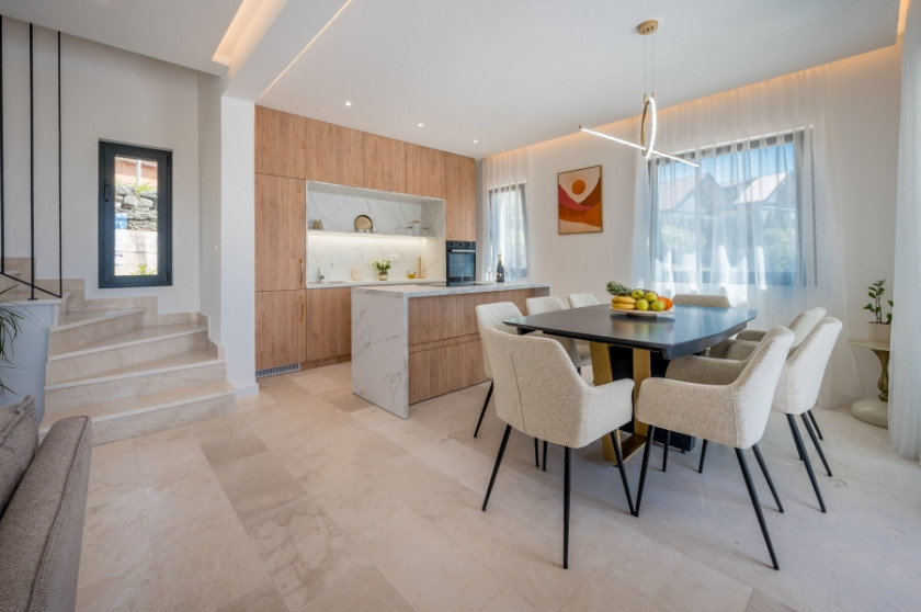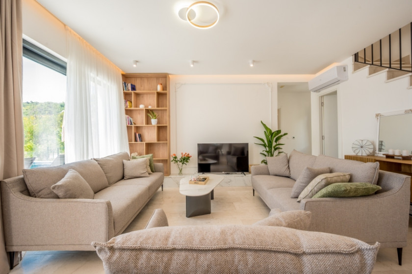 The villa is built with high-quality materials and excellent construction standards. Underfloor heating and a central water heater are installed. The property is fully furnished with custom-made furniture and equipped with all necessary appliances, ready for immediate move-in. It is located 5 minutes by car from the airport, while the city center and Porto Montenegro are only about 10 minutes away.