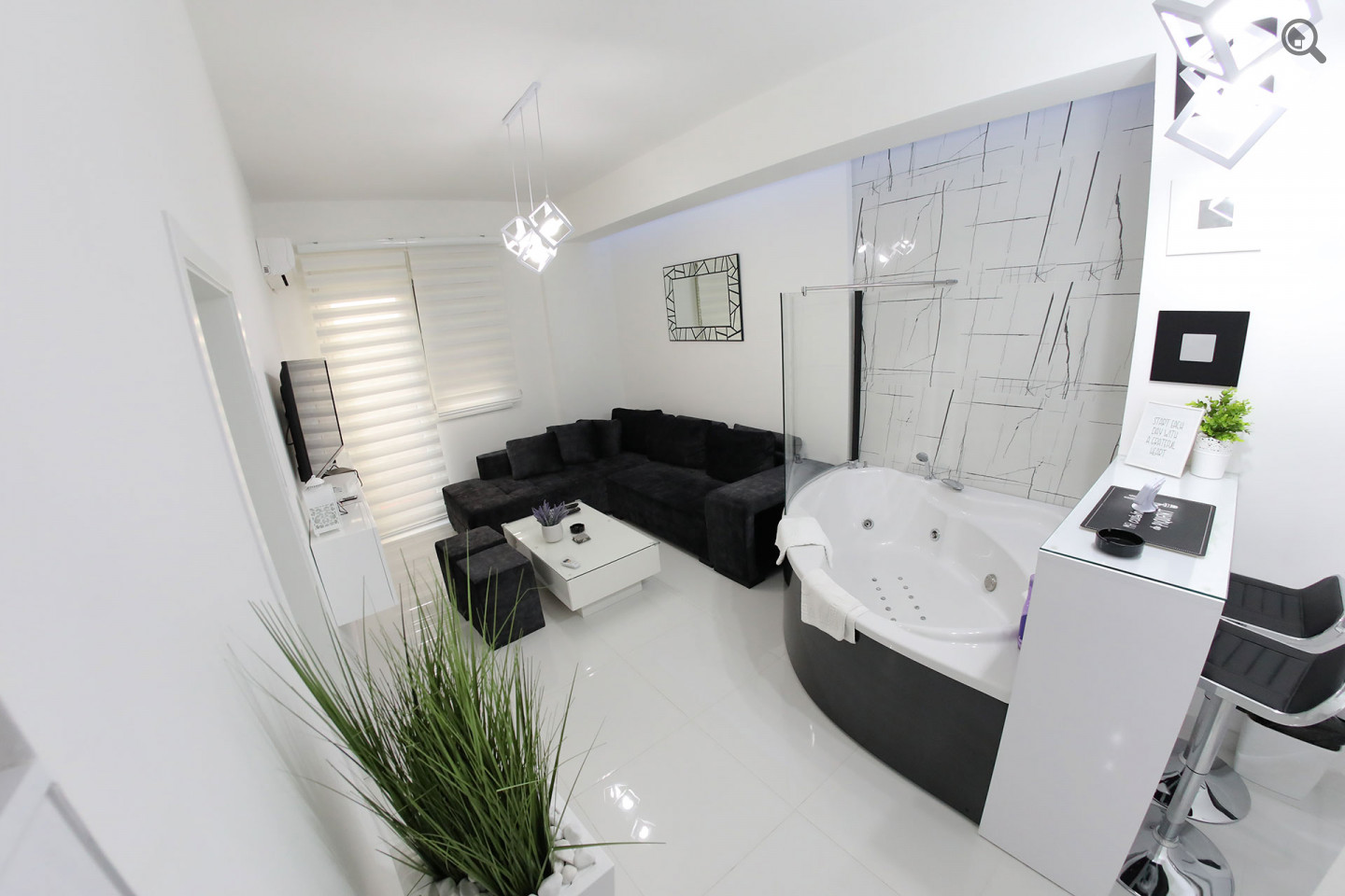 Beschreibung: Apartman Abstract 1 - Mirijevo. Dvosoban apartman se nalazi na opštini Zvezdara, u naselju Mirijevo, na adresi: Ilije Pavlovića 15. Apartman Abstract 1 ima 35m2 i namenjen je za maksimalno 2 osobe. Smešten je u prizemlju stambene zgrade. Sastoji se od jedne odvojene spavaće sobe koja poseduje francuski ležaj, dnevni boravak sa velikom ugaonom garniturom. U sklopu dnevnog boravka nalazi se veliki djakuzi. Kompletno opremljena moderna kuhinja sa indukcionom pločom, frižiderom, aspiratorom i svim potrebnim escajgom. Kupatilo sa tuš kabinom. Gostima je na raspolaganju besplatan WiFi internet, smart TV sa kablovskim kanalima, čisti peškiri i čista posteljina kao i profesionalni sto za masažu (na zahtev gosta) koji možete neograničeno koristiti tokom vašeg boravka, bez ikakve nadoknade. Ukoliko želite da provedete intimno veče sa dragom osobom možemo vam obezbediti: intimnu večeru po vašem izboru, dekoraciju stana (sveće, ružine latice), profesionalnu masažu i živu svirku (tamburice ili gitaru)....