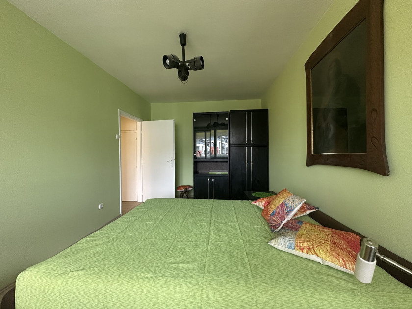 Stan je veoma svetao, zapadno orijentisan i osunčan tokom celog dana, sa funkcionalnim rasporedom koji obuhvata prostran hodnik, dnevni boravak sa izlazom na lođu, dve spavaće sobe, kao i kuhinju sa trpezarijom i kupatilo. Grejanje je centralno, a u cenu zakupa su uključeni kablovska televizija i internet (SBB).