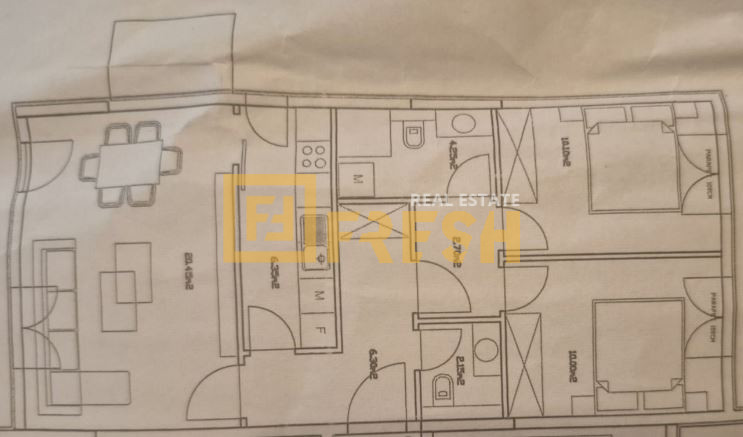 It consists of a living room, dining room, kitchen, 2 bedrooms, bathroom, toilet, hallway and terrace.