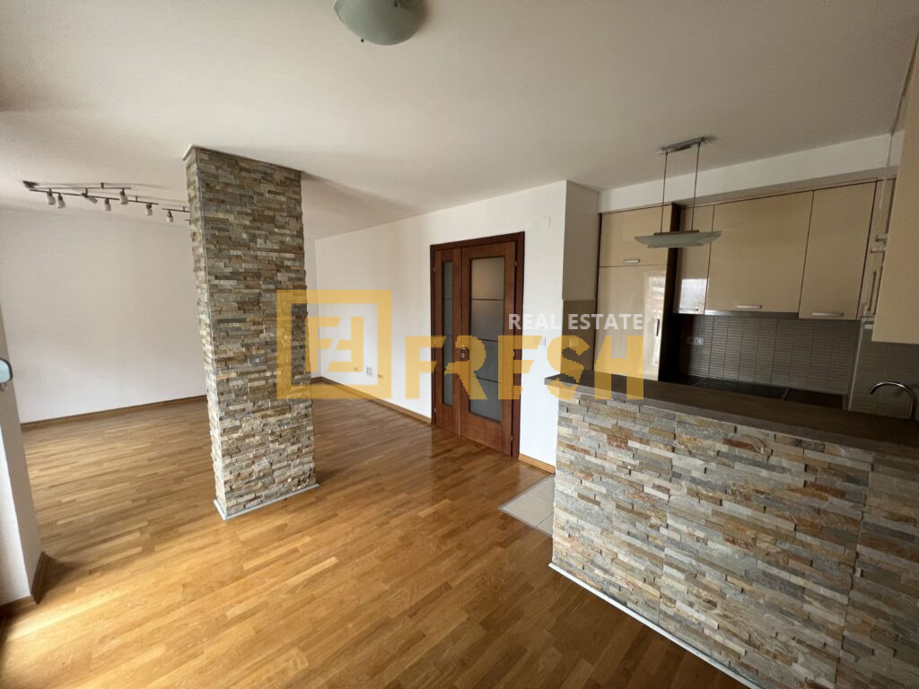 The apartment consists of two levels. On the first level there is an entrance hall with a separate storage room, a large bathroom, a spacious living room with a dining room and a fully equipped kitchen with all the necessary white goods. The staircase leads to the second level, where there is a separate wardrobe, a large hallway, two spacious bedrooms and another large bathroom.