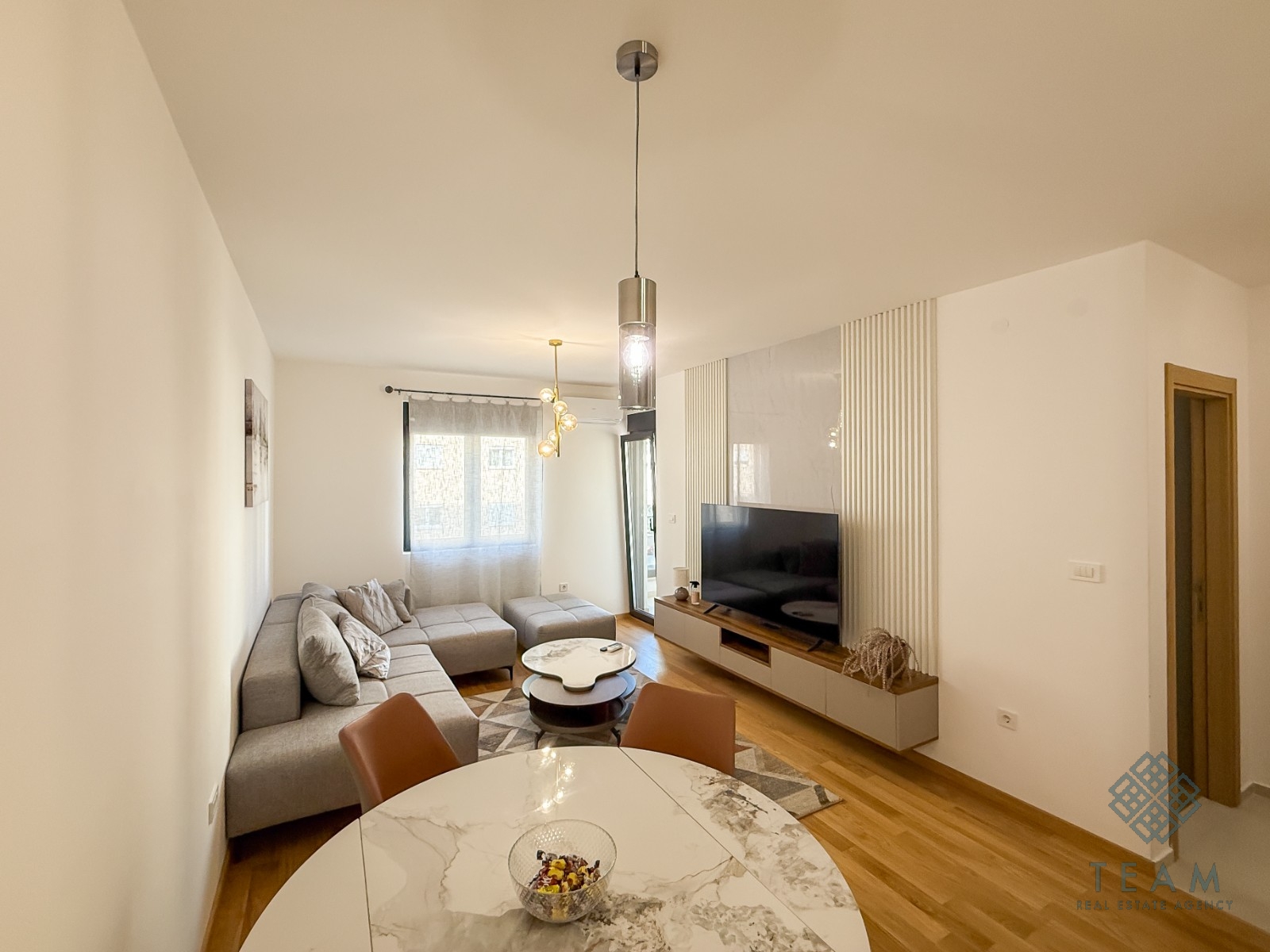 Beschreibung (Englisch): A very nicely furnished one-bedroom apartment of 45 m² is for rent, located on the second floor of the Acton complex, behind Voli, City Quarter, Podgorica.