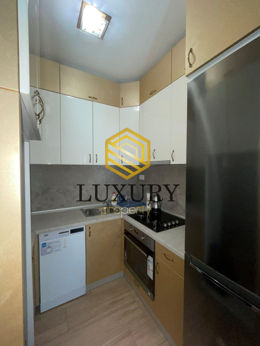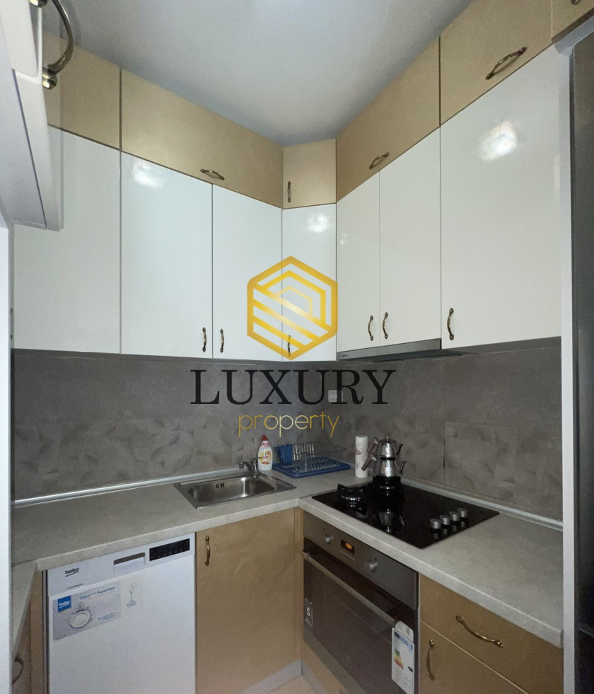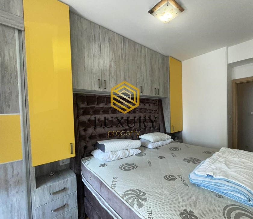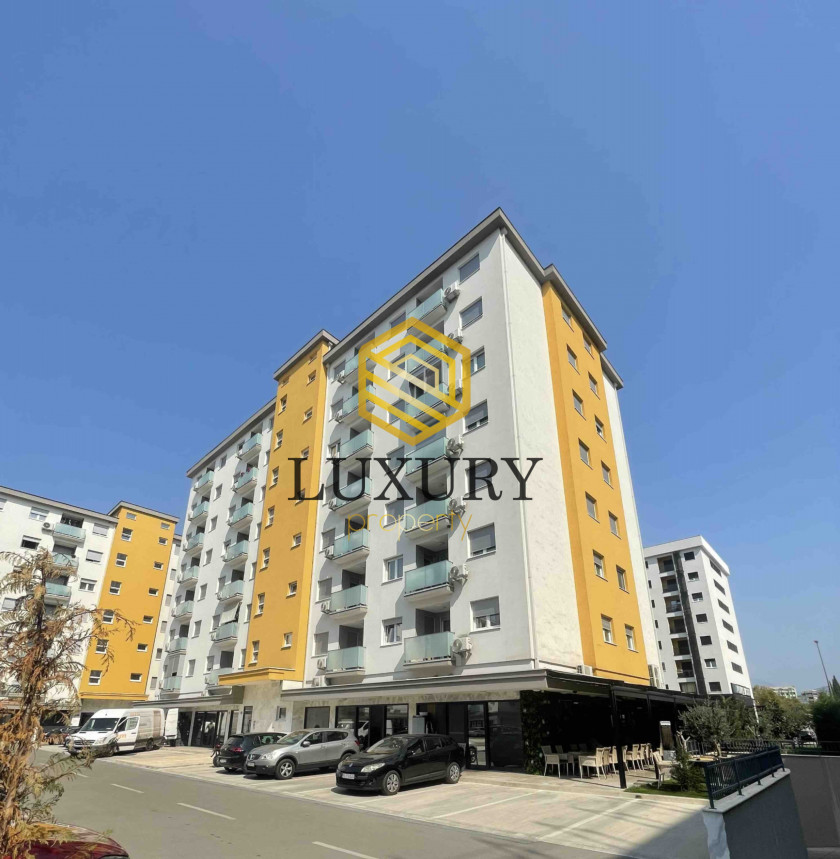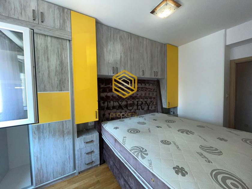 U podzemnoj garaži je obezbijeđen prostor za parking jednog auta i uključen je u ovu ponudu. Stan se nalazi na prvom spratu ove stambeno poslovne zgrade, opremljen je novim namještajem i ima jednu terasu na koju se izlazi iz dnevnog boravka i iz spavaće namijenjene starijima.