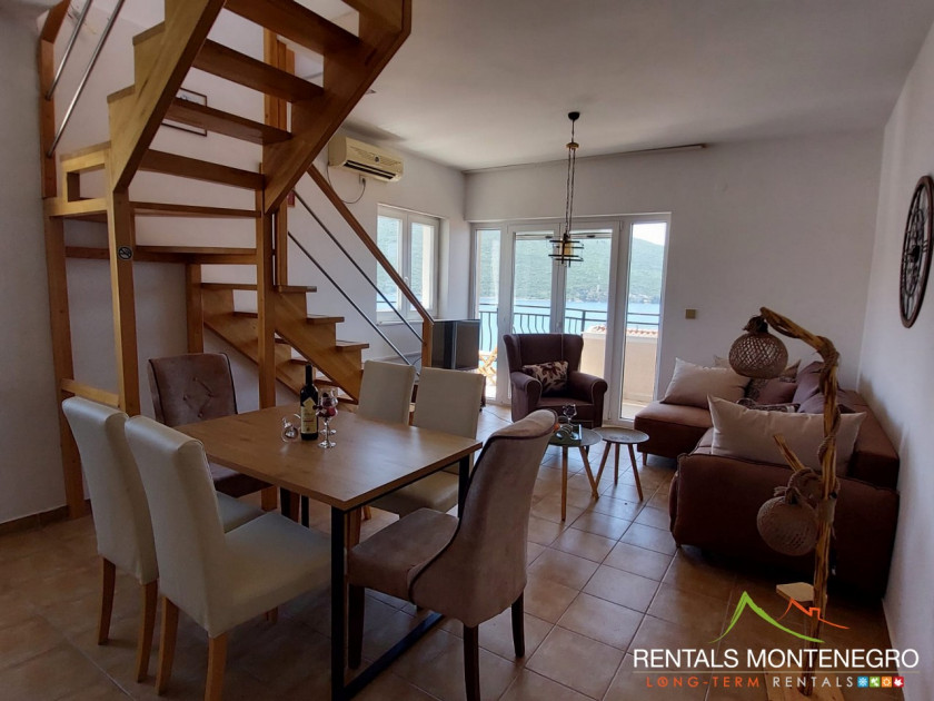 This three-bedroom apartment of 125 m² is located close to the sea in Kumbor. During the summer, the pool is available for use.