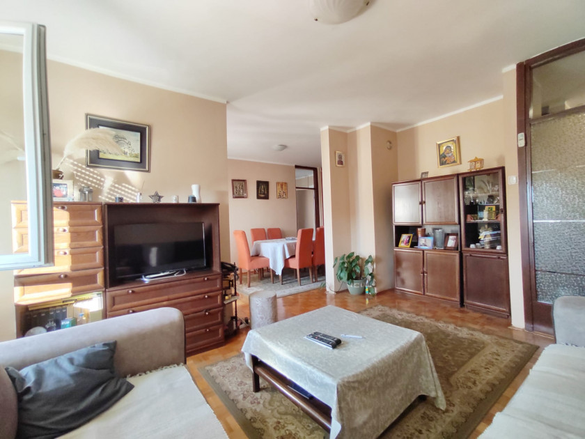 Beschreibung: Na jednoj od najlepših lokacija za život, u prvom redu zgrada do Dunavskog keja, na V spratu (od VII) prodajemo stan ukupne površine 77m2 (69m2 grejne i dve lođe od po 4m2). Stan se sastoji od komfornog dnevnog boravka povezanog sa trpezarijom i lođom, kuhinje i lođe (koja ima frontalni pogled ka Dunavu), velike spavaće sobe (koju su mnogi pregrađivali na dve dečije), manje spavaće sobe, velikog kupatila i gostinskog toaleta.