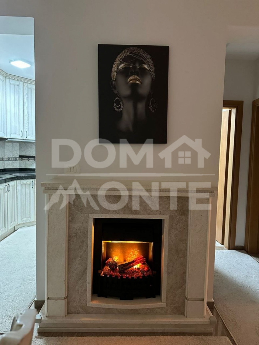 Квартира 1 спальня, 1 очень высокий этаж, большой застекленный балкон, камин.