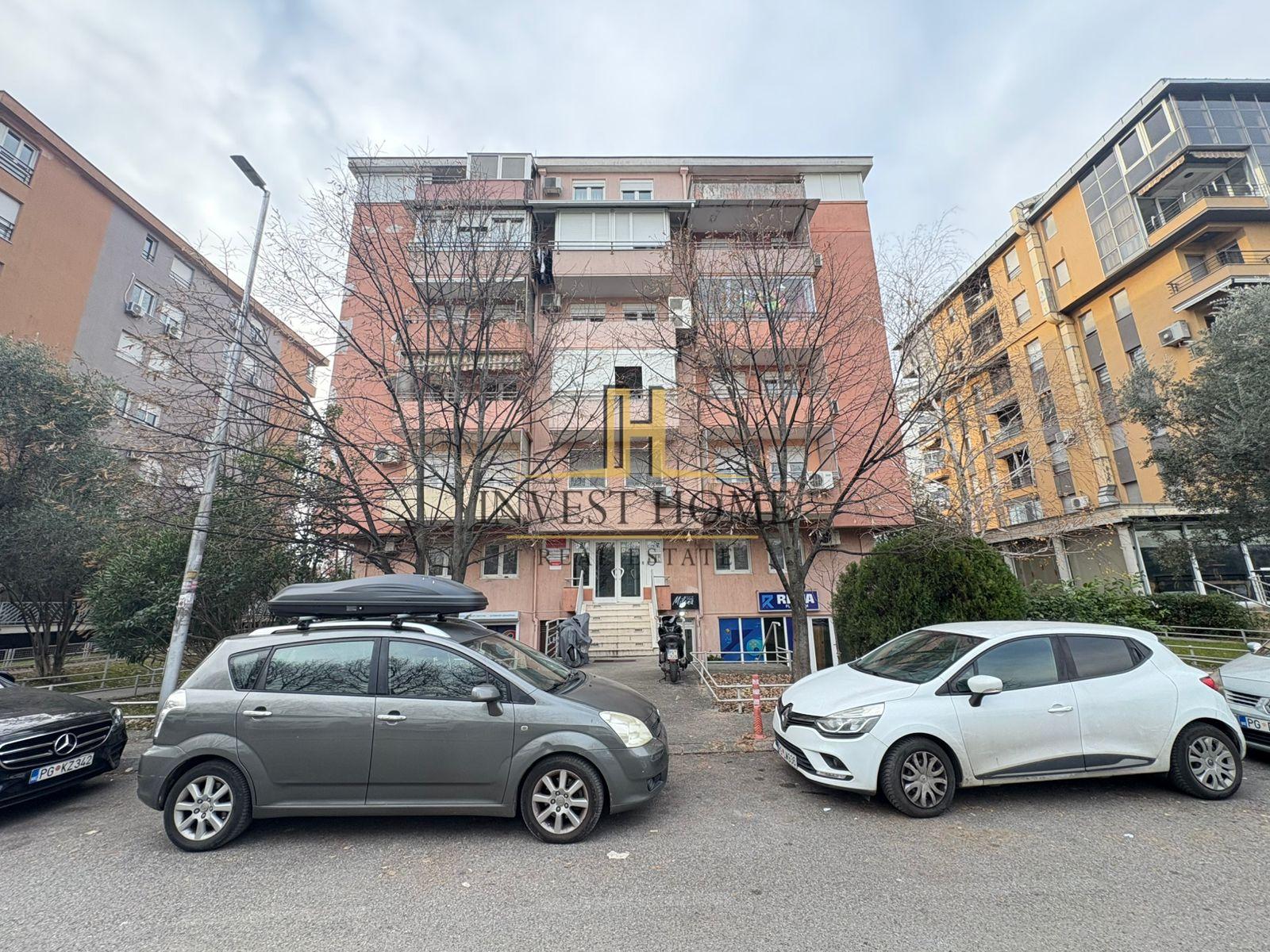 Beschreibung: Za prodaju jednosoban stan Preko Morace, povrsine 63m2. Stan se nalazi na petom, ujedno I poslednjem spratu stambene zgrade koja posjeduje lift. Struktura stana: dnevni boravak sa kuhinjom I trpezarijom, spavaca soba, hodnik, kupatilo, balkon. Nalazi se u blizini kafica Bahus, kao I svih gradskih sadrzaja. Stan je moguce pregraditi u dvosoban.