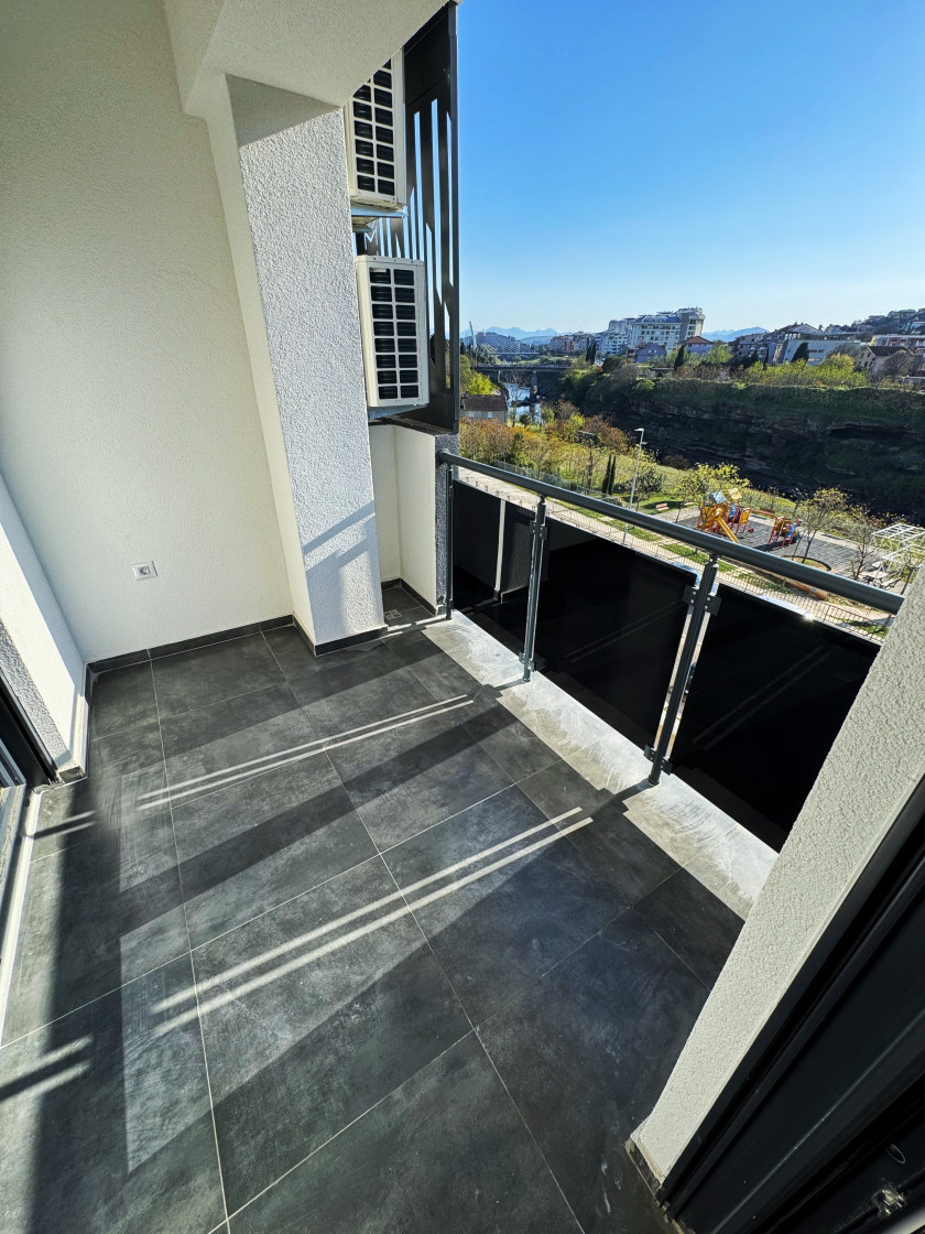 Beschreibung: U novoj modernoj zgradi na obali rijeke Morače,u blizini ambasada, brda Gorica, škola, Doma zdravlja itd.