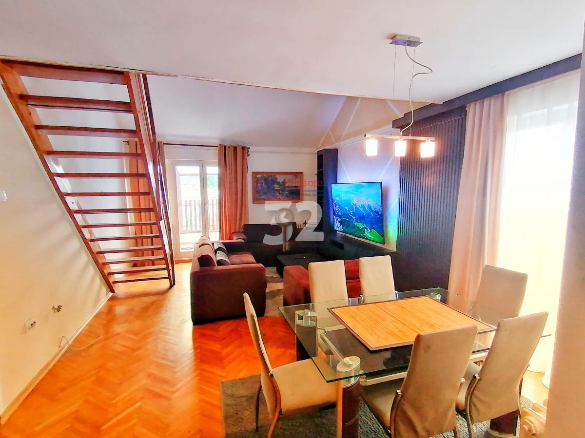 Beschreibung: U prilici smo da vam ponudimo dupleks stan na atraktivnoj lokaciji; struktura: prvi nivo: ulazni hodnik, dnevni boravak sa kuhinjom i trpezarijskim delom, spavaća soba, kupatilo, 2 terase; drugi nivo: 2 spavaće sobe, kupatilo; centralno grejanje, dva klime, interfon, lift itd. BB100524 Agencijska provizija 50%