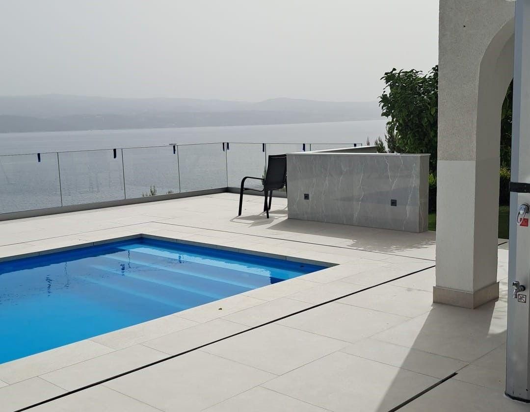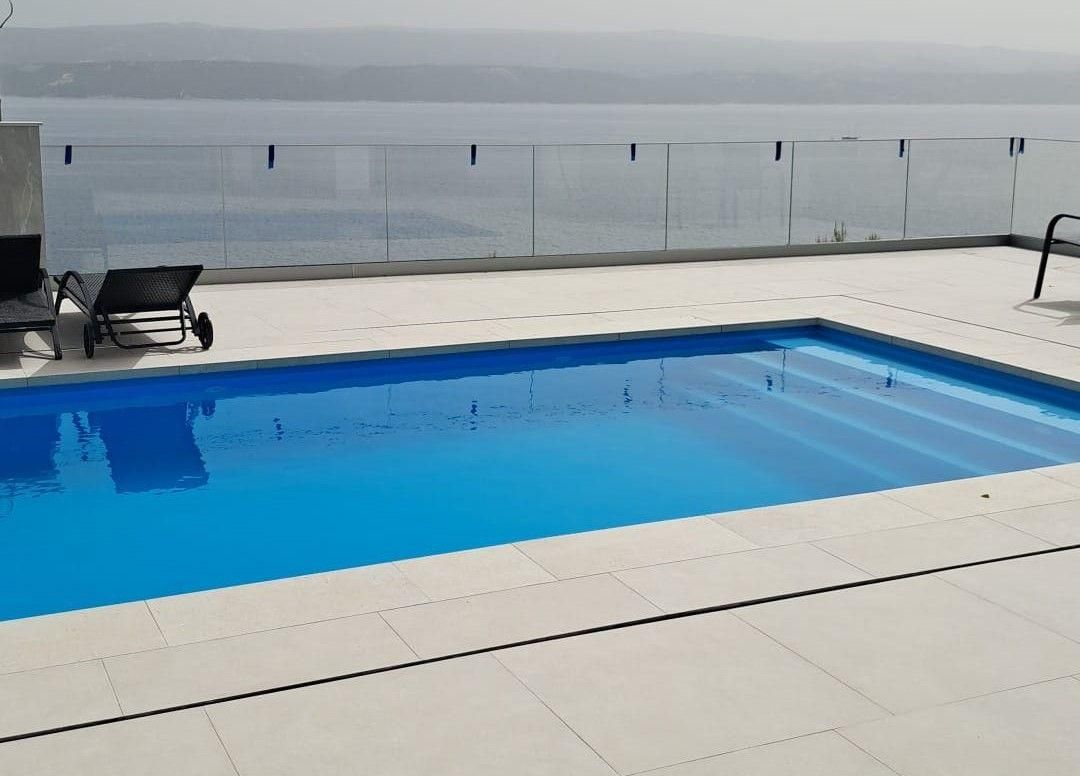 Description (Croatian): Lokva Rogoznica, apartmanska kuća stambene površine 434 m2 (bez terasa) na parceli od 1016 m2 i s 2 pomoćne zgrade: konoba 31,5m2 i pomoćni natkriveni objekt (kuhinja i gril) površine 41m2, s osiguranim parkirnim mjestima za sve jedinice i velikom garažom, te s bazenom.