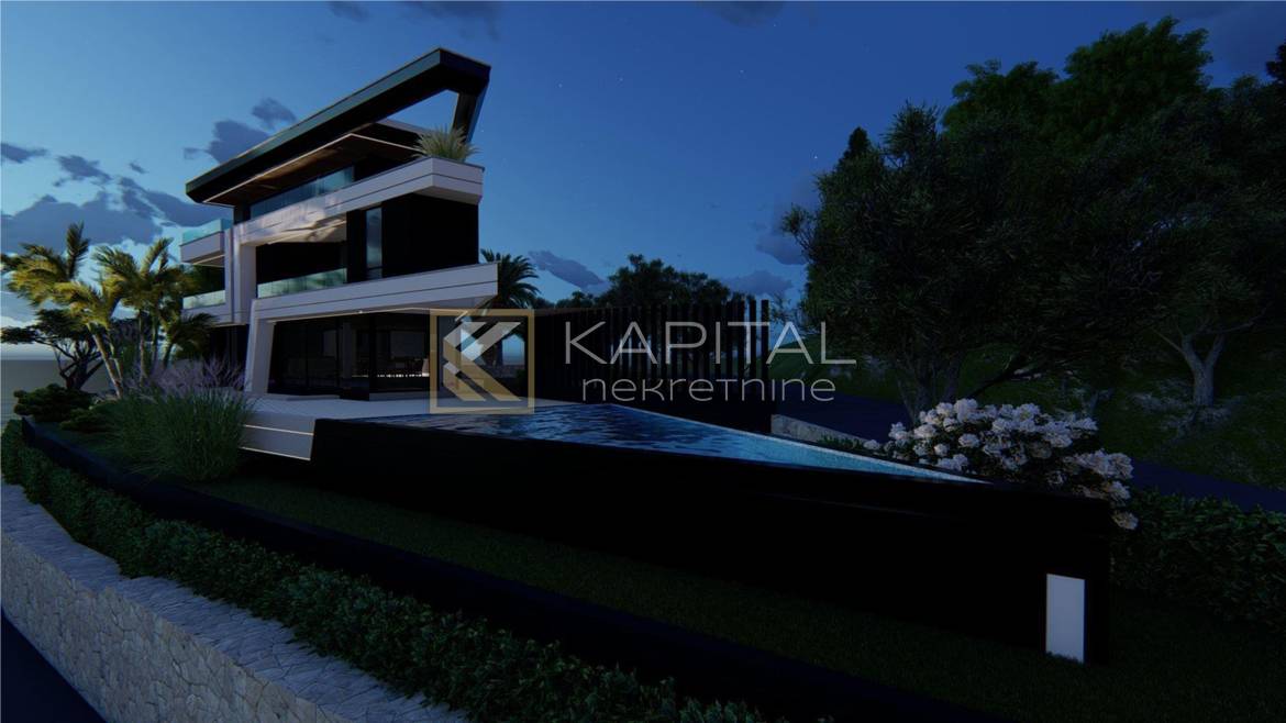 Description: Lovran, luxury villa of 330 m2. In the basement there is a garage for two cars, fitness sauna and boiler room. The ground floor consists of a large living room with kitchen and dining area, toilet, pantry and terrace. On the first floor there are 3 bedrooms, each with its own bathroom, and two have a dressing room and a balcony. On the second floor there is a master bedroom with bathroom, dressing room, terrace and jacuzzi. On a plot of 639 m2, next to the villa there is a swimming pool and parking for two more cars. Heating is under the heat pumps and duct air conditioners. Great location, only 150 meters from the sea. For all information call 091 / 450-5150
