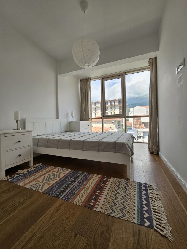 Description: The owner rents out a brand new, furnished apartment in the center of Budva with 2 large bedrooms.