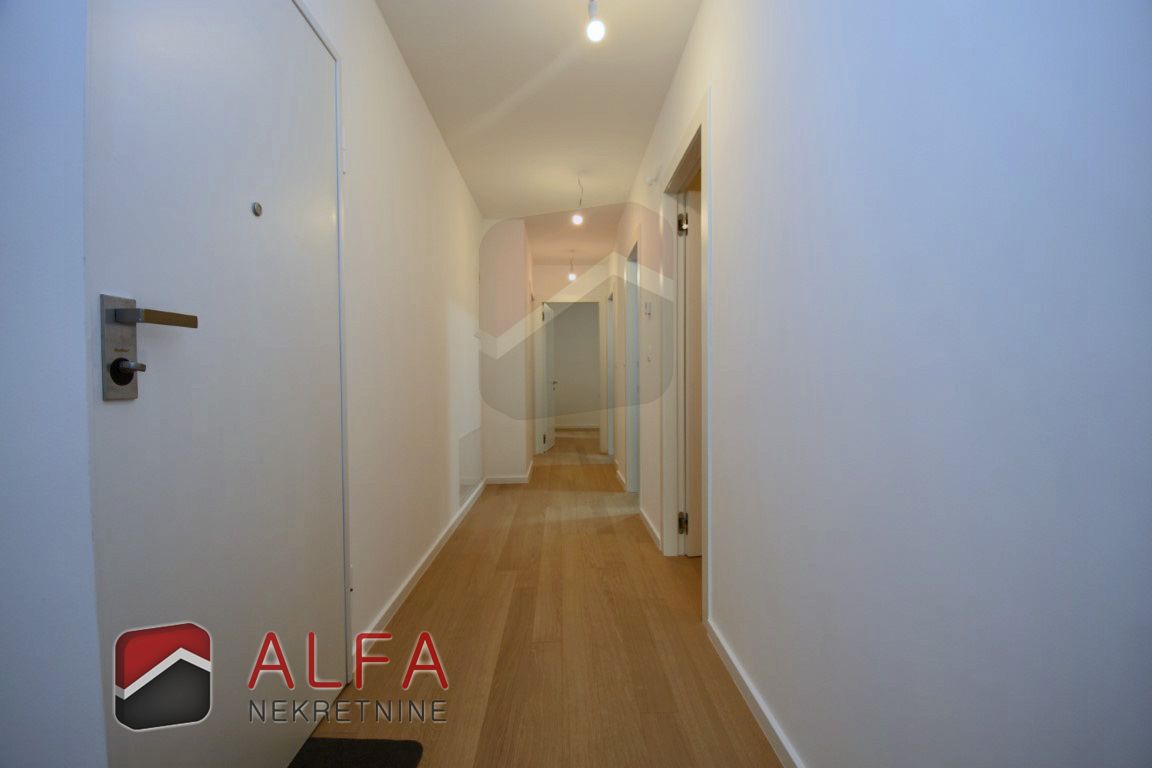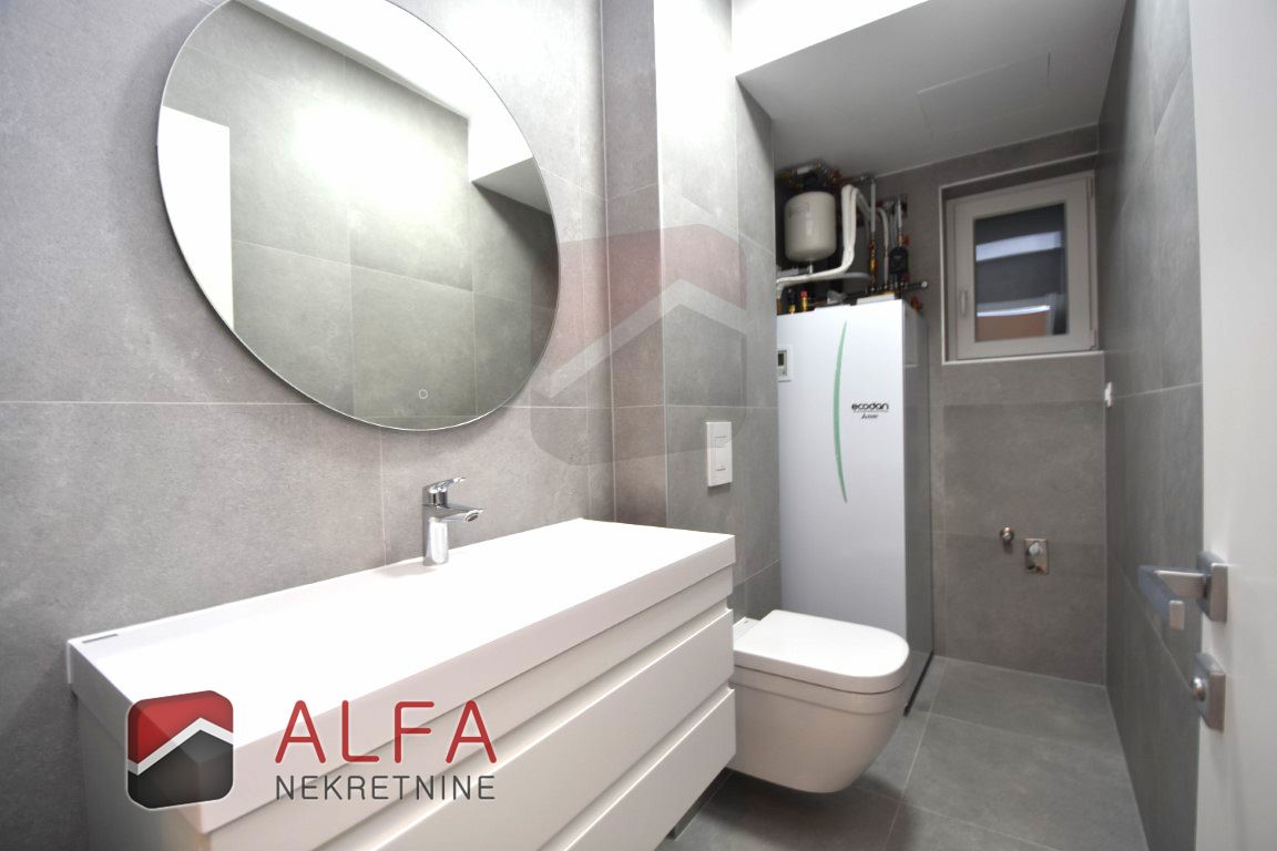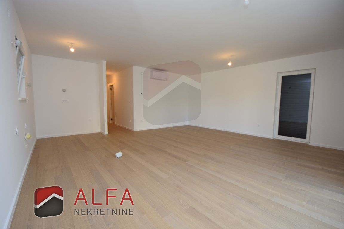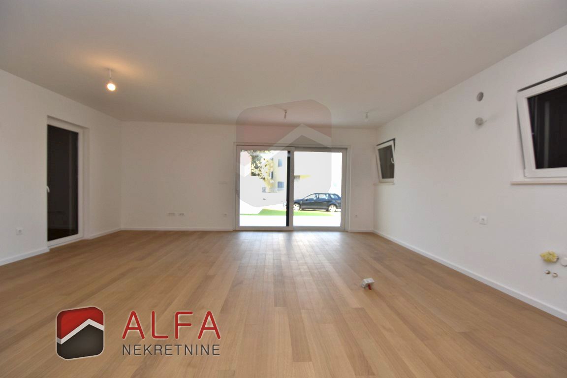 The apartment consists of an entrance hall, three bedrooms, two bathrooms, separate toilet, kitchen with dining and living area with access to large beautiful terrace. Next to the terrace is its own part of the yard.