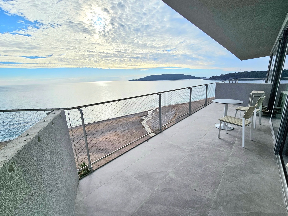 This 67m2 apartment, perched on the eighth floor, boasts a meticulously designed interior featuring a stunning living room and a terrace that presents an unobstructed panoramic view of the sea and beach.