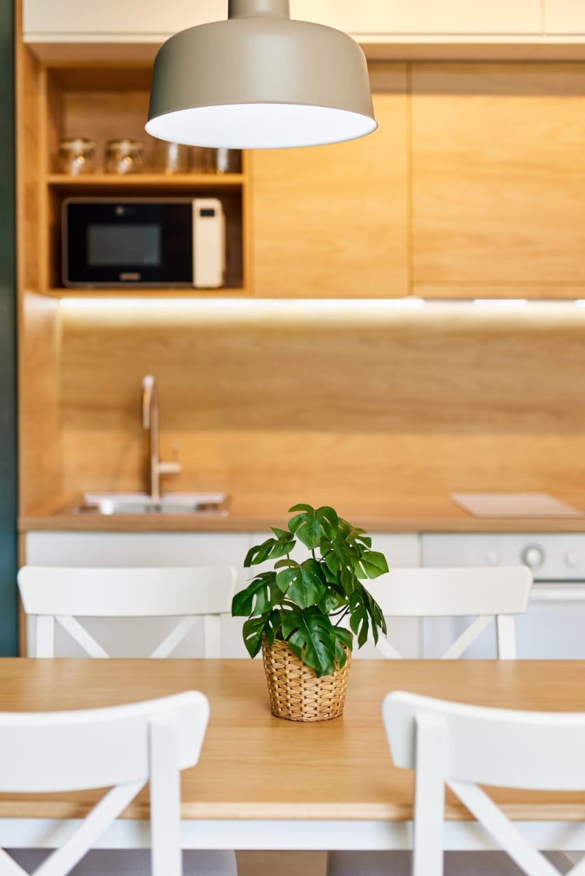 Есть холодильник, кухонная плита, стиральная и посудомоечная машины.