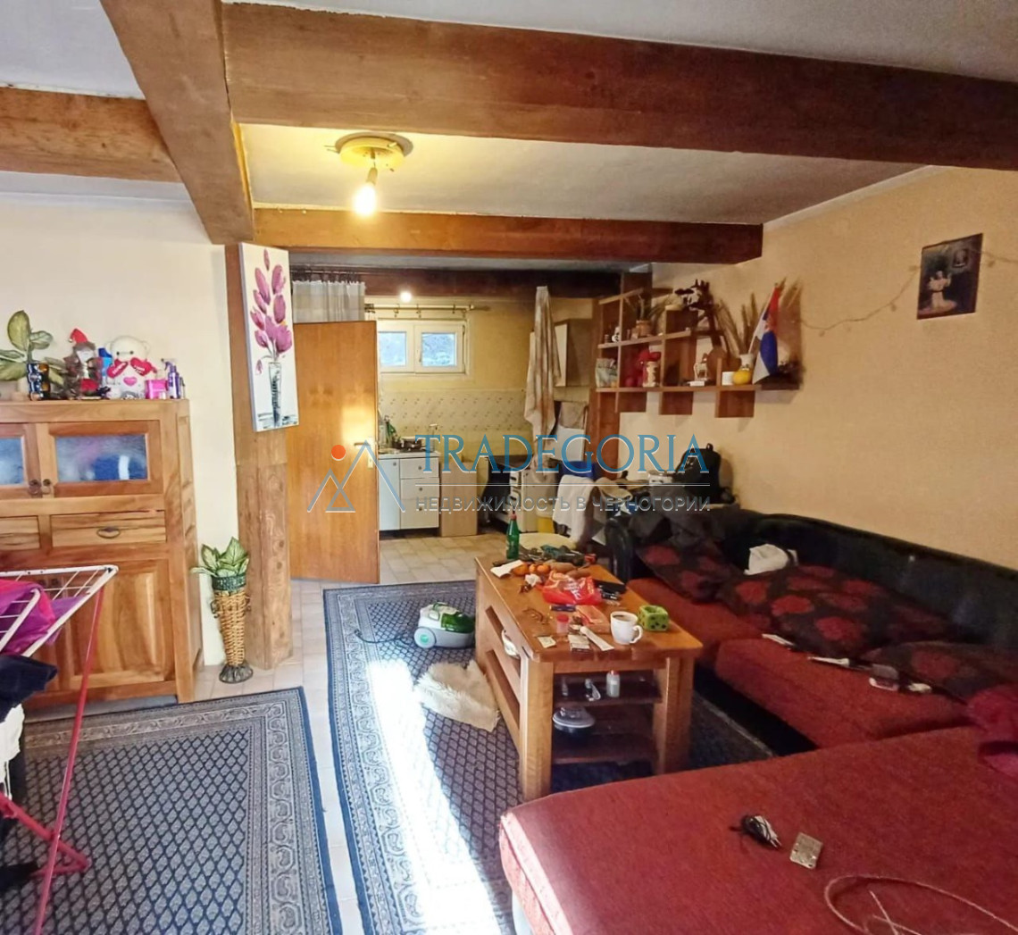 Description: Description House characteristics: - two-storey house with an area of 70 m2 - land plot 130m2 House structure: - on the ground floor there is an entrance hall, living room, kitchen, bedroom, bathroom, terrace - second floor unfinished External staircase. Fenced area. Garage. City water, sewerage - septic tank, asphalt road. View of the sea and mountains....