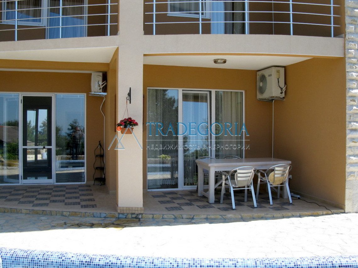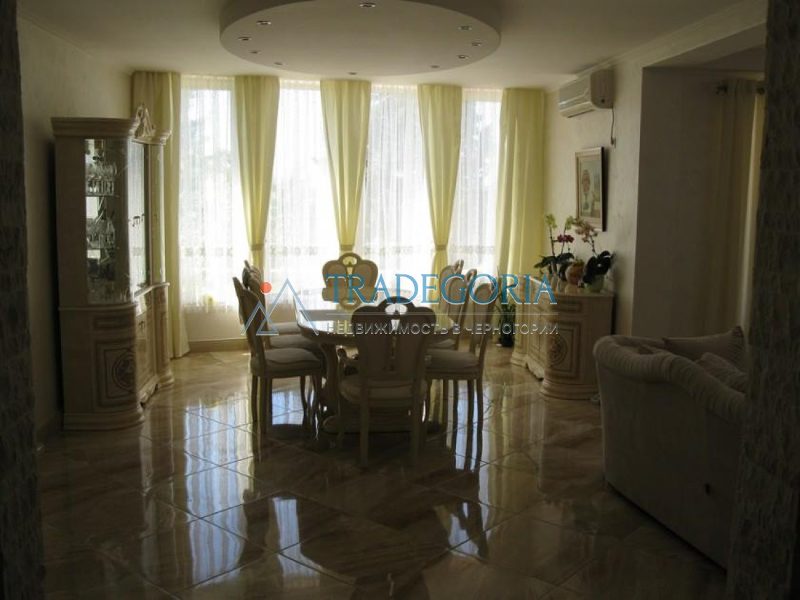 Description: Description A three-story villa in the heart of the Bar Riviera was designed according to an original design in accordance with modern trends in architecture and construction. The exterior of the building uses traditional Montenegrin Mediterranean details - gallery balconies and wide terraces. The facade of the house is made of high-quality red brick (comfort block), which ensures that the room maintains optimal temperature at any time of the year. All rooms and terraces of the villa offer fabulous views of the sea and mountain ranges. A large living room with a dining area and fireplace, a fully equipped kitchen, 5 bedrooms, 3 bathrooms, as well as several utility areas and a room for a wine cellar make this house ideal for a large and friendly family. The interior design of the villa is made in the fusion style that is popular today, combining Italian materials, as well as traditional Mediterranean colors and textures....