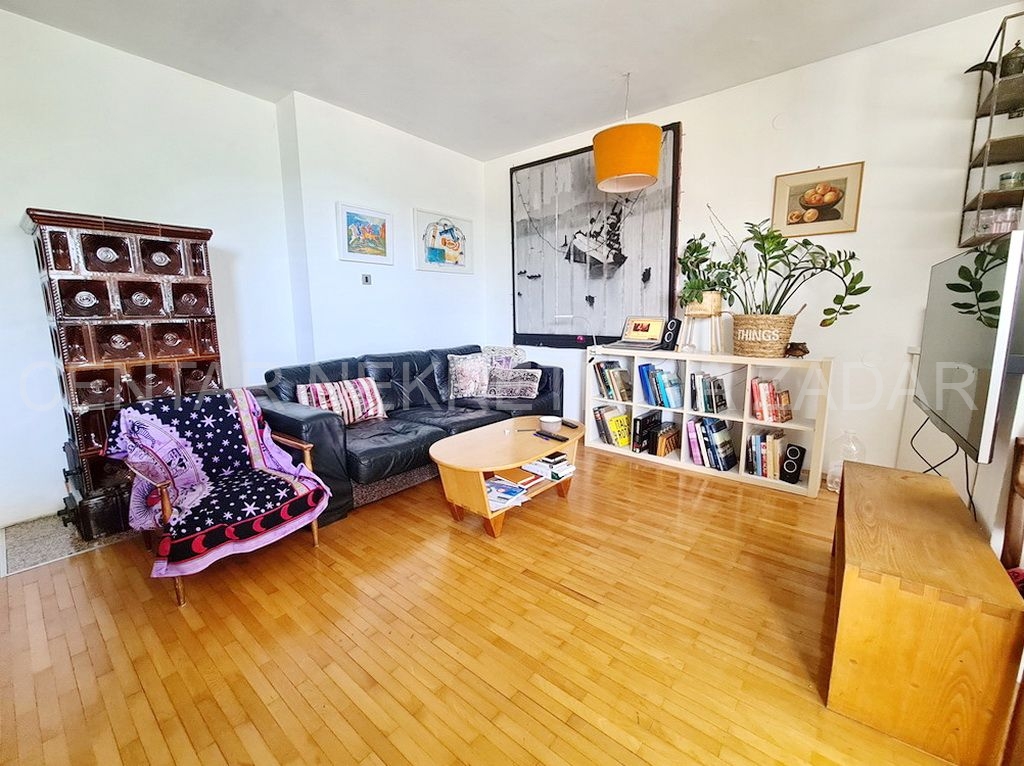 The apartment is located on the first floor of a building with an elevator. Its floor plan is 92 m² and consists of a kitchen with a dining room and a living room, three bedrooms, a bathroom and a loggia of about 8 m² with a view of the Zadar waterfront and the sea. There is also a woodshed on the ground floor of the building.