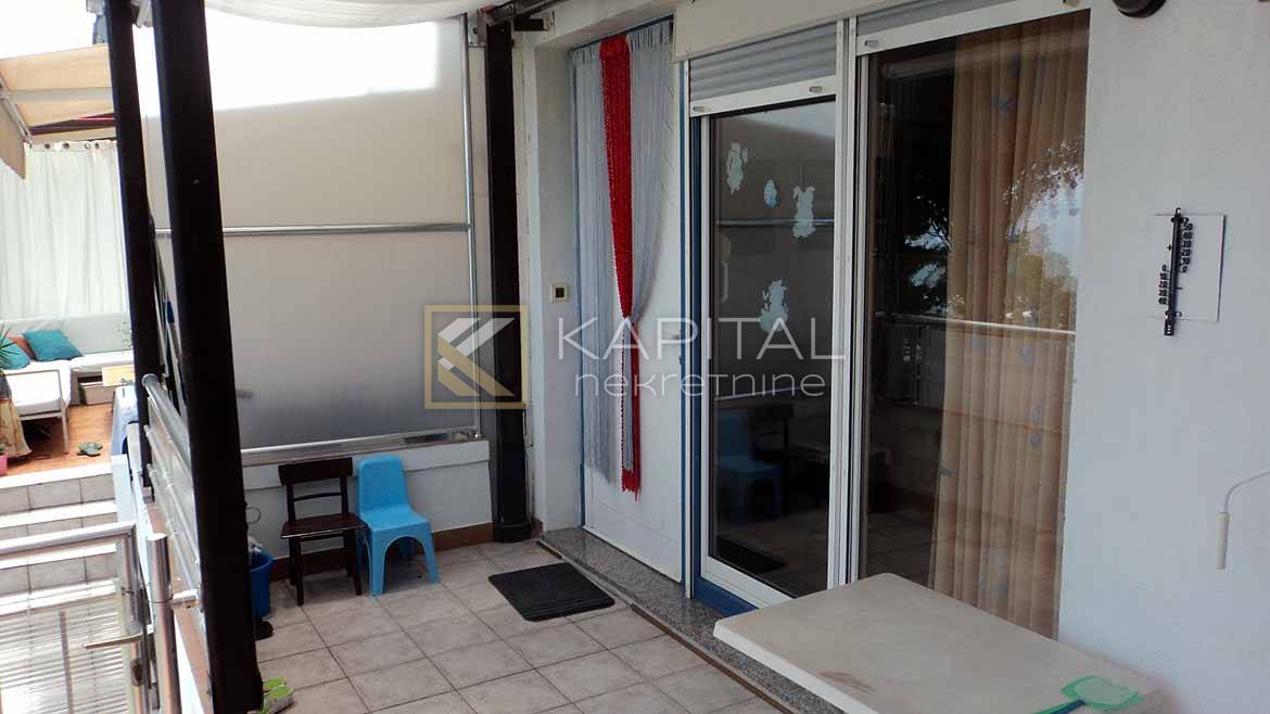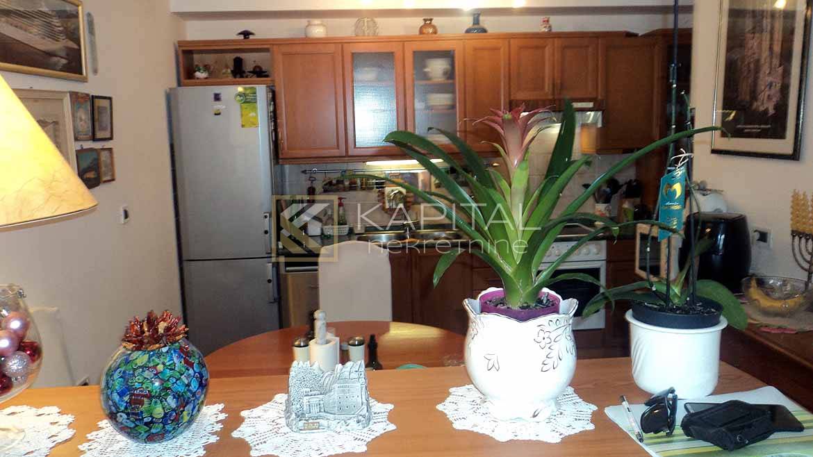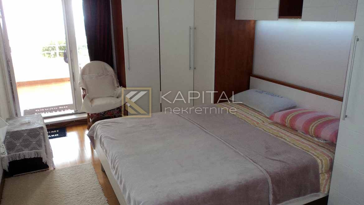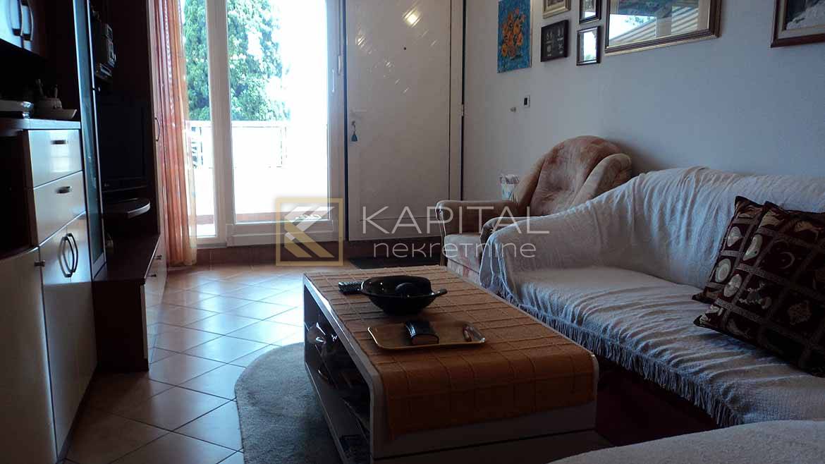 Description: Decorated apartment on the high ground floor with a southern entrance via the terrace and a beautiful view of the sea. The design is 2 bedrooms with one room smaller. It is sold with all the furniture and the owner also has a parking space. Exceptional location 100m from the sea and the beach. For all information, call 385 98/264-783