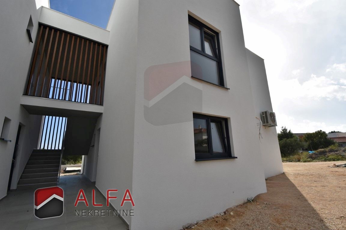 Description: Croatia, Vodice, comfortable apartment is for sale with own swimming pool, situated on the ground floor of a new modern residential building, in a quiet location 950 meters from the sea.
