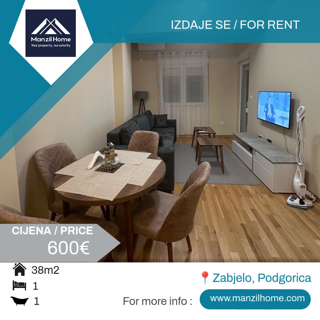 Studio apartment, 36m2, Zabjelo, on the 2nd floor, unfurnished, ideal for business premises — suitable for a beauty or hair salon, massage studio, manicure/pedicure or office. More