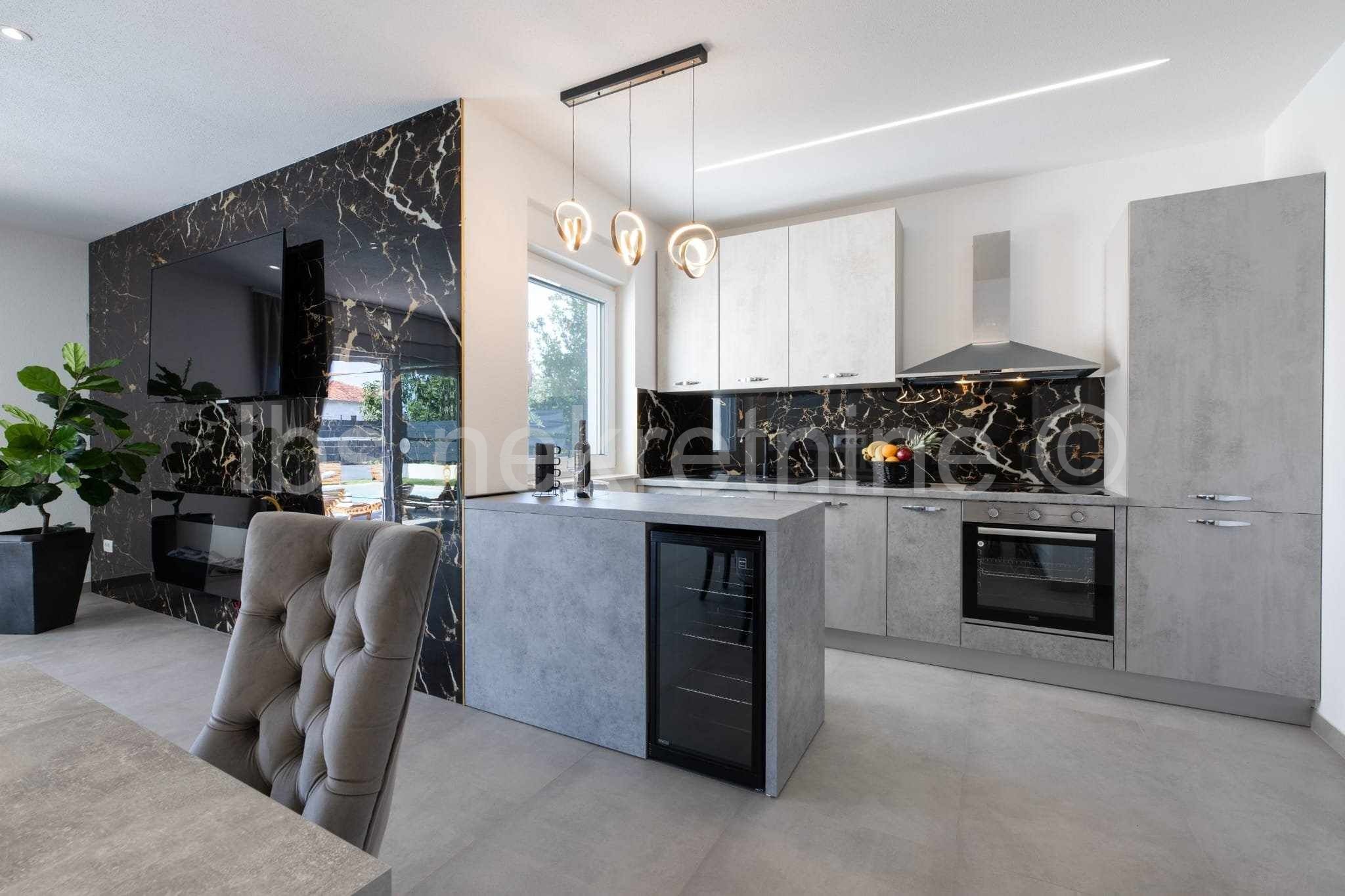 Description: Between Split and Trogir in Kaštel Novi we are selling a beautiful detached modern house with a swimming pool.