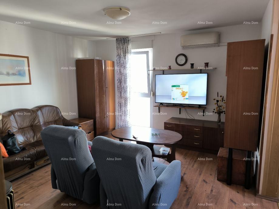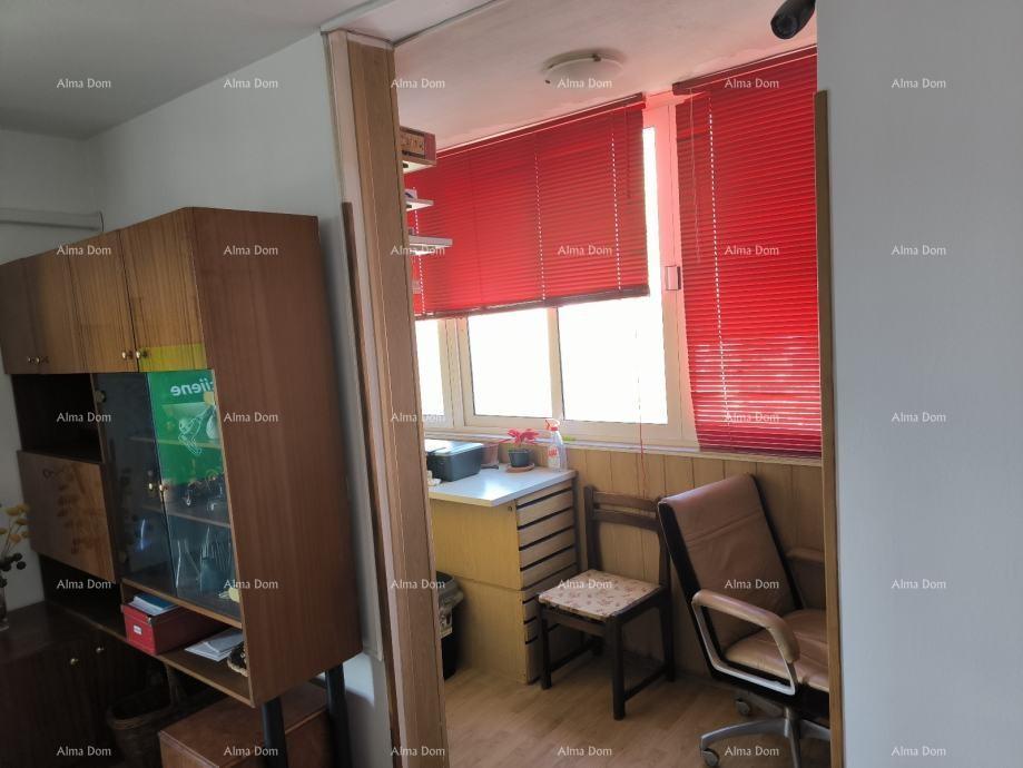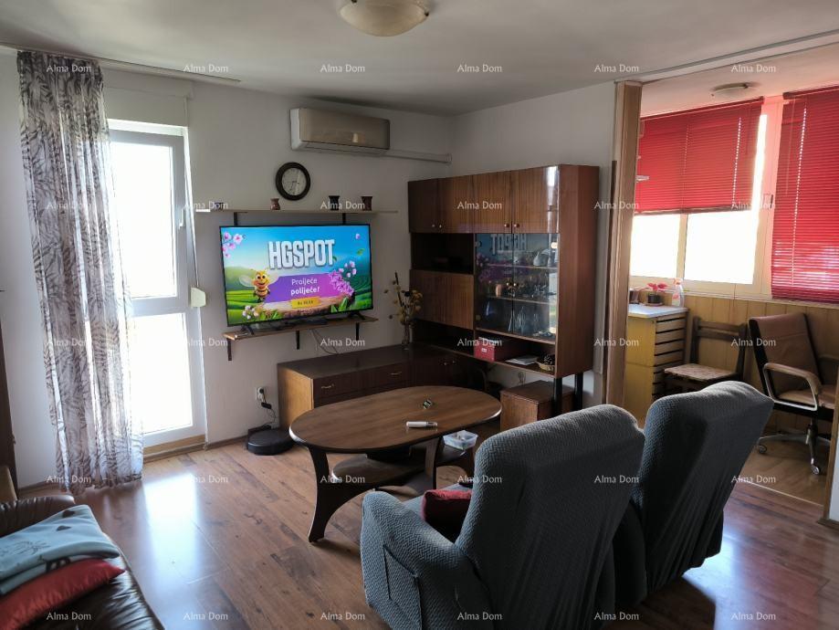 Description: Apartment for sale in Pula. The apartment is located on the 3rd floor of the building and consists of a hallway, living room, kitchen with dining room, bedroom, closed loggia and storage room.