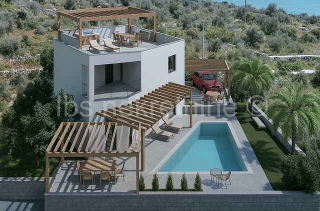For sale an exclusive modern villa with panoramic sea views in the construction phase, located in a quiet and prestigious part of Rogoznica. An ideal choice for a comfortable life, tourist rental or as a safe investment.