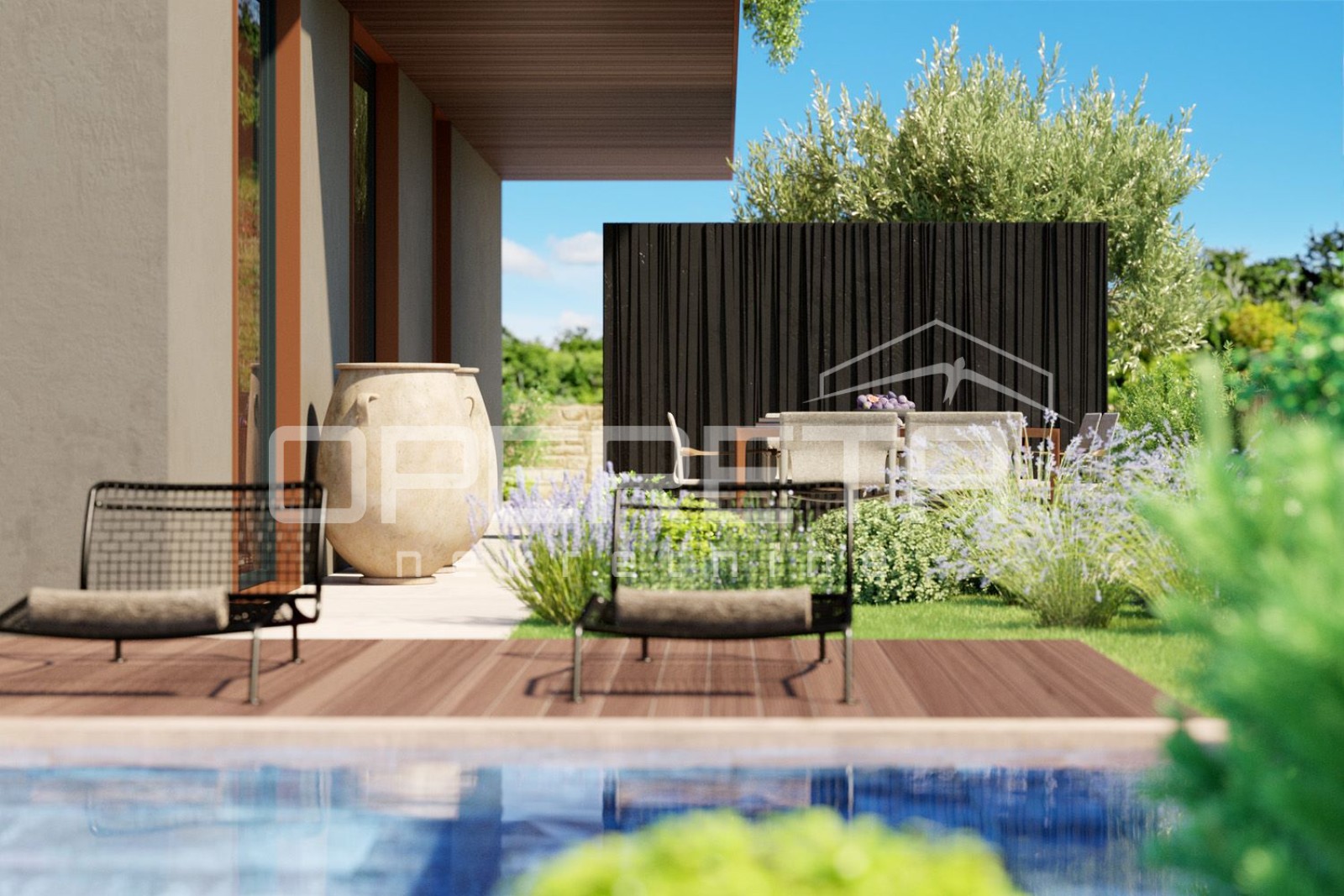 Description: A new building of top quality is for sale, currently under construction - interior works and landscaping phase.This attractive house is located in a quiet village near Bale, only 6 km from the historic town of Svetvinčenat, in an ideal location that offers a combination of privacy, nature and proximity to all important amenities.Located on a plot of 503 m², the house of 175 m² was built according to the project of a renowned architect, with modern design solutions and Mediterranean elements such as stone cladding on part of the facade, which gives the space a special charm and authenticity.The house is spread over two floors. On the ground floor there is a spacious and bright living room connected to the kitchen and dining room, which has achieved an open and airy living concept. Large glass walls allow plenty of natural light throughout the day and visually connect the interior with the exterior of the house. The ground floor is further enriched by a pantry, toilet and a private wellness area with a sauna - the perfect place to relax....