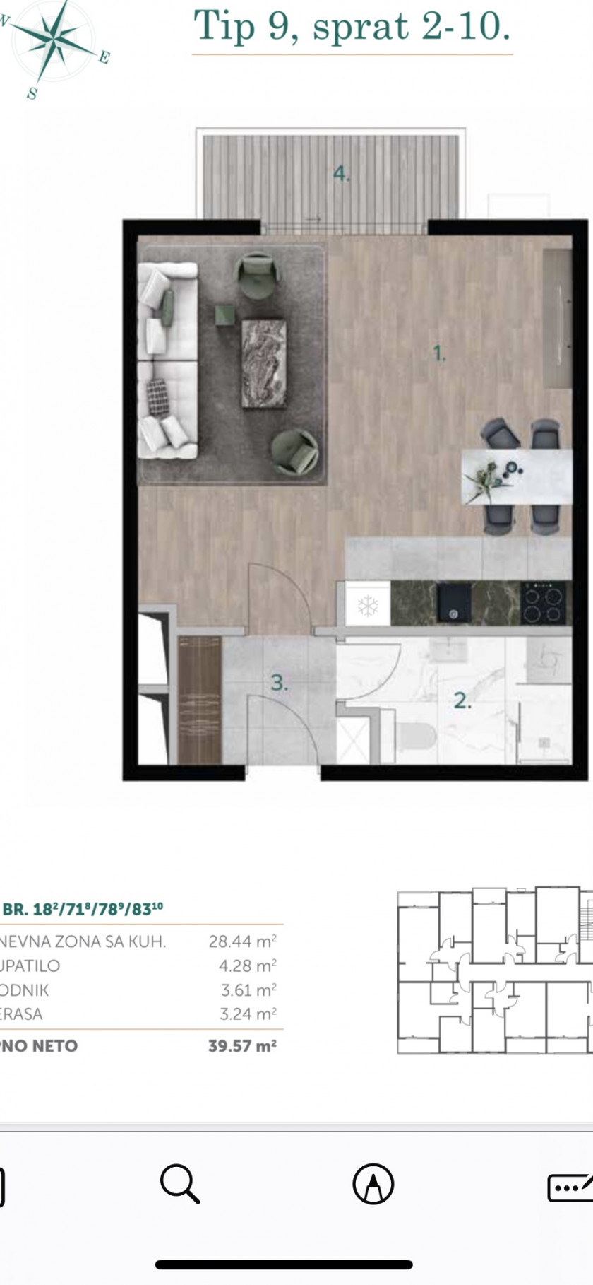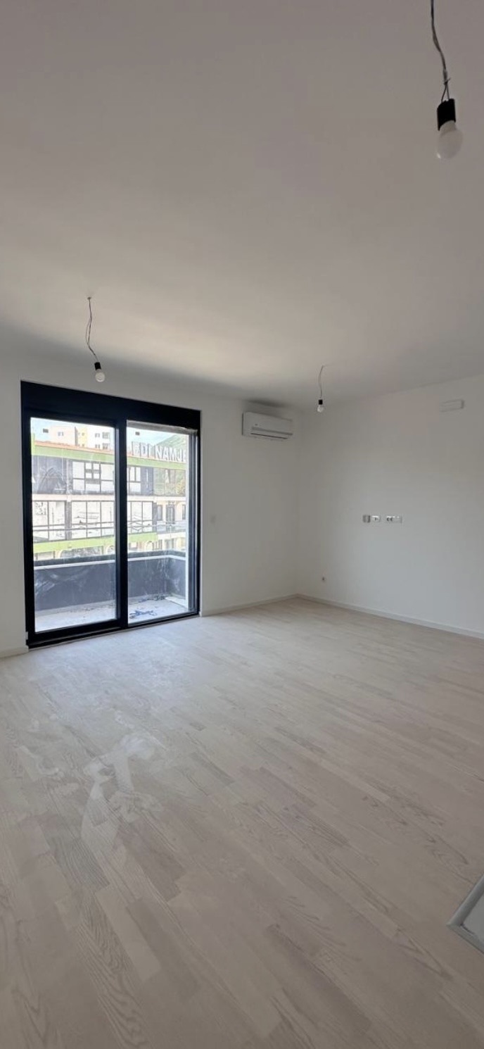 Description (Croatian): Na prodaju nov studio povrsine 40 m2,odmah useljiv. Odlicna gradnja, visociji sprat zgrada ima 2 lifta, slobodan parking ispred zgrade . Cena 99.200e . Vise info na tel 069 495 743