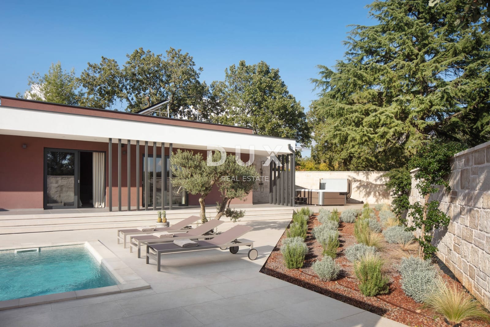 Rovinj - the jewel of the Istrian coast Located on the western coast of Istria, Rovinj is one of the most picturesque and desirable towns on the Croatian Adriatic. Its narrow stone streets, pastel facades and charming harbor exude Mediterranean elegance, while its rich cultural heritage and vibrant gastronomic scene attract visitors from all over the world. With plenty of sunny days, crystal clear sea and untouched nature in the hinterland, Rovinj offers the perfect blend of hedonism, relaxation and inspiration - the ideal destination for anyone looking for more than a classic vacation. A short distance from this magical town of Rovinj, just a four-minute drive from the Lim Channel, connected to Rovinj by a 12-kilometer-long bicycle path that follows the route of the former railway, is a modern detached villa that represents the perfect harmony of contemporary architecture and a refined lifestyle. The newly built single-storey house offers 175.08 m² of enclosed living space, exuding functionality, elegance, and a touch of luxury in every corner.