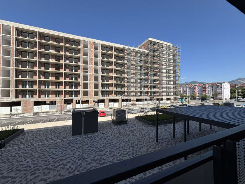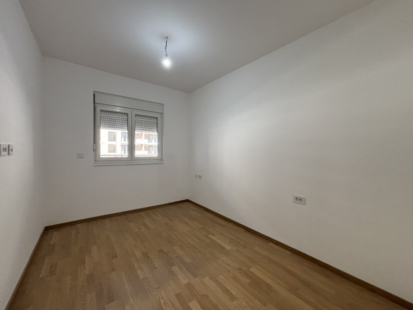 One bedroom apartment for sale in a new building at Stari Aerodrom, Podgorica. The apartment is located on the fifth floor and is oriented to the west with a view of the street. The apartment is 48 square meters and has a bedroom, bathroom, living room with dining room, kitchen and terrace. The apartment is equipped with the highest quality carpentry, German sanitary ware and has an air conditioner in the living room. The building has two elevators, a large parking lot around the building with a children's park in the inner atrium. The price of the apartment includes a parking space of 13 square meters at a price of 15,000 euros.