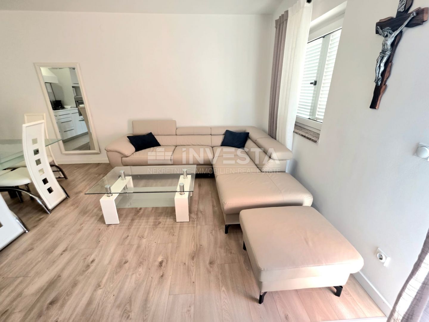 Description: For sale is a beautiful, modernly appointed apartment in Barbariga, featuring two bedrooms and located on the raised ground floor of a high-quality residential building. It is just 700 metres from the sea, the beach, and all essential amenities such as shops, restaurants, and cafés. Thanks to its functionality, comfort, and excellent location, this property is ideal both for summer holidays and year-round living.