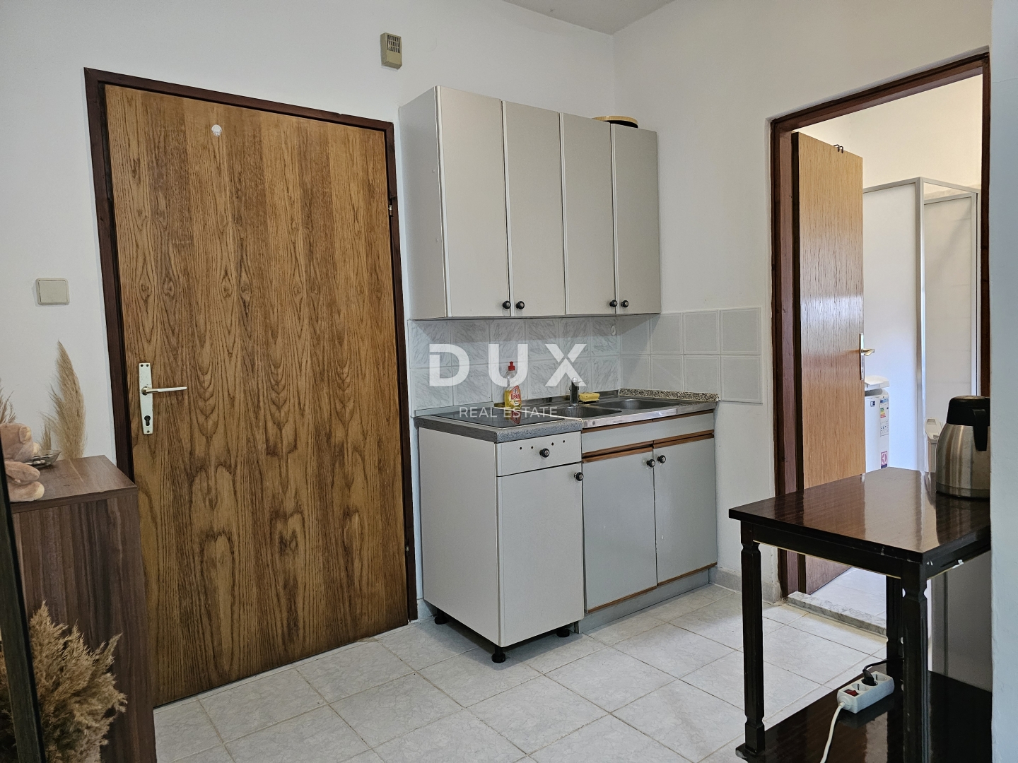 In the town of Krk, in a quiet street, an apartment is for sale on the ground floor of a small residential building. The building was renovated in 2022, a new roof and a new thermal insulation facade were installed. The building has a use permit and a floor plan. The apartment has an area of 34.80 m2. Upon entering, you are greeted by an entrance area with a kitchen that connects to the living room. The bedroom is separate, as well as an equipped bathroom. From the living area, you can exit to the terrace, which is covered, and from the terrace it is possible to access the common garden of the building, where there is a barbecue and a place to socialize. The apartment also comes with a parking space, and an additional advantage is a storage room in the attic of approximately 8 m2, ideal for storing things that you do not use daily. In the immediate vicinity are the health center, primary school and shops, while the city beach is only 700 meters away. This means that in a few minutes' walk you can reach both the event center and the sea....