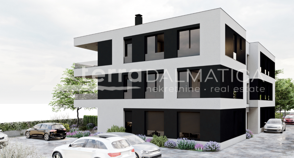 Description: For sale is a modern apartment located on the first floor of a small residential building in Srima near Vodice, with a total living area of 74.26 m². Apartment S3 consists of a spacious living room connected to the kitchen and dining room, three bedrooms, two bathrooms, a hallway and a covered terrace of 17 m². The apartment also has an 11 m² parking space, which further contributes to practicality. The apartment is equipped with underfloor heating, air conditioning and is built from top quality materials, which ensures comfort, quality and durability. The building is under construction, with completion planned for spring 2026. Since the buyer does not pay real estate tax, the owner is a legal entity, and VAT is included in the price. It is located in Srima, a quiet Dalmatian town that exudes Mediterranean charm, and is in the immediate vicinity of the tourist-famous Vodice and only a few minutes drive from the historic Šibenik. The proximity of beautiful beaches with crystal clear sea makes this property an excellent choice for both family life and tourist rental.