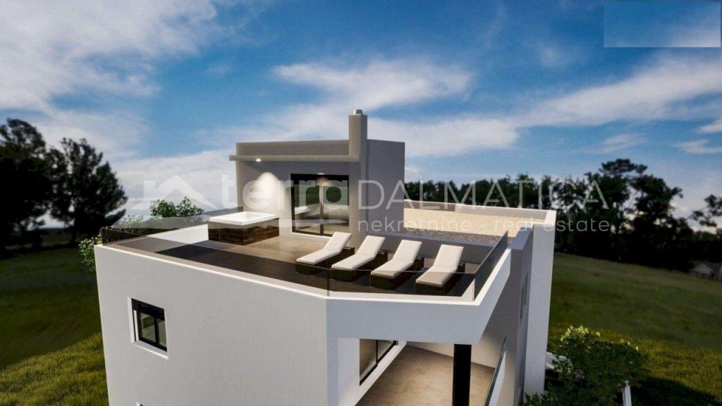 Description: In a quiet part of Vodice, at an attractive location, just 400 meters away from the sea and beach, this extraordinary apartment is located, which offers the perfect blend of privacy, comfort and functionality. The apartment is located on the second floor of a building with a total of three apartments, each located on its own floor - which guarantees a high level of privacy and a quiet environment. The 135 m² living area is distributed extremely practical and comfortable. The apartment consists of an entrance area with a wardrobe, three bedrooms (one of which has its own bathroom), additional bathroom, kitchen, dining room and spacious living room. A special value is given by a covered terrace and an exit to a large, uncovered roof terrace of 43 m², from which the sea view will be given - the ideal place for relaxation, socializing or sunbathing. Two of their own parking spaces come along with the apartment. Construction is ongoing, and the completion of the work and the possibility of immigration is planned for the spring of 2026....
