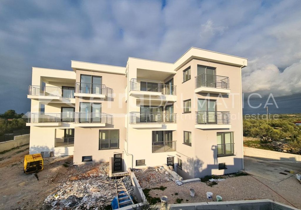 Description: A comfortable apartment with a sea view is for sale in Primosten. It is located on a hill above Primosten, in a building whose complete completion and moving in will be by the summer of 2021. The special feature of the apartment is a large covered terrace of over 18 m2 with a beautiful sea view. There are two bathrooms one of which is within one of the bedrooms. The apartment also has one outdoor parking space and a storage room in the basement. The apartment will be installed three air conditioners, underfloor heating in the bathrooms, security doors. All outdoor air conditioning units will be pulled to the roof of the building. Possibility of installing a fireplace because the apartment has a chimney opening. The apartment is in a semi-detached building with a flat roof where one side is retracted relative to the other, so the terrace provides intimacy. Distance from apartment to the center of Primosten is 2.5 km. Primosten is a tourist center with beautiful long pebble beaches, one of the most prestigious tourist destinations in Dalmatia.