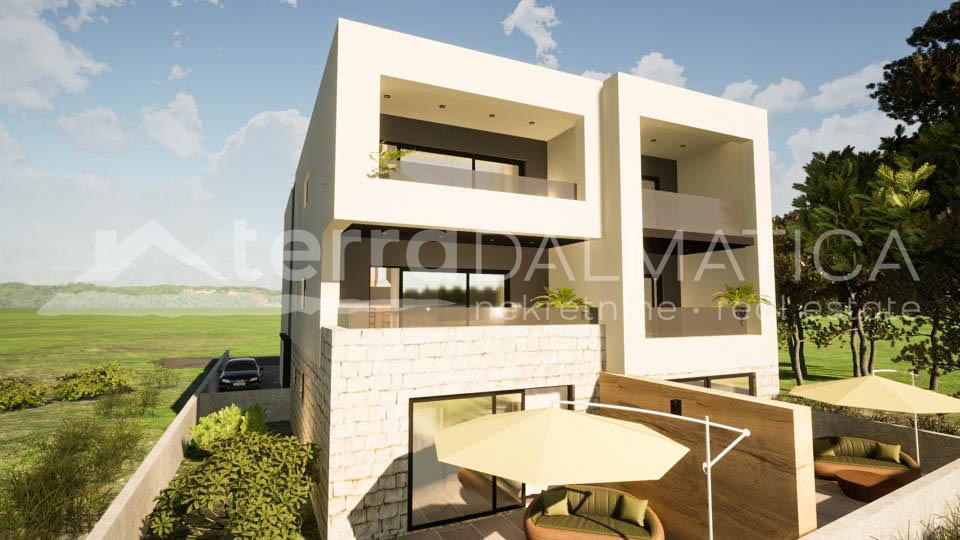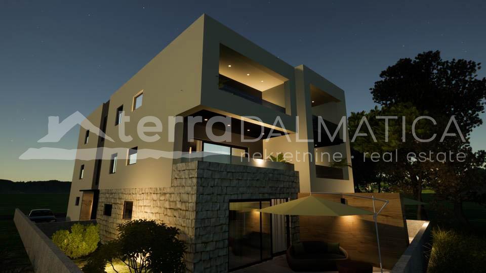 Description: An apartment in Zaboric is for sale, located on the first floor of a new apartment building nearing completion. The construction is expected to be finished by the end of 2024. This modern apartment is ideal for family living or as a vacation investment. The apartment consists of an entrance and a hallway with space for a large built-in wardrobe. The hallway leads to a spacious living area that includes an open-concept kitchen, dining room, and living room. The living room opens onto a covered terrace with a partial sea view, perfect for relaxing and enjoying summer evenings. In this part of the apartment, there is one bedroom and a guest toilet. The other part of the apartment includes two bedrooms and a bathroom, providing ample space for the entire family or guests. Pine trees across from the building provide perfect shade during hot summer days, enhancing the enjoyment of this beautiful space. The apartment is ideal for those seeking a modern and comfortable living space near the sea, with beautiful natural surroundings and all necessary amenities within reach. Zaboric is a charming small town located on the Adriatic coast, near Sibenik....