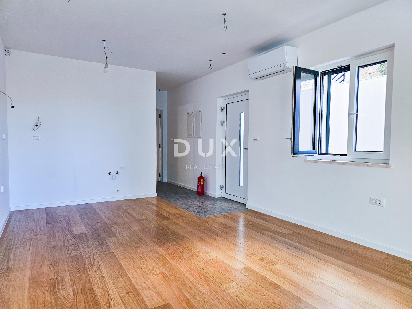 Rare offer! We present an apartment in a new building, in the very center of Mali Lošinj. The apartment is located on the ground floor of a small residential building, a few minutes walk from the main square. The living area is 47.50 m2, and the apartment also has a 38 m2 yard, parking space and storage room. The floor plan is functionally designed so that every square meter is used. At the entrance to the apartment there is an open entrance hall. The kitchen, dining room and living room with access to the loggia are located in the front part of the apartment. The second part of the apartment consists of a bathroom and a spacious bedroom. The building was built with quality materials, underfloor heating in the bathrooms, modern joinery with triple-layered glass, electronic roller shutters, multi-split air conditioners, burglar-proof and fire-proof doors, intercom. The floor coverings are quality ceramics and top-quality parquet, and on the outside there is anti-slip ceramics and stone. The apartments are ready to move in. The documentation is in order....